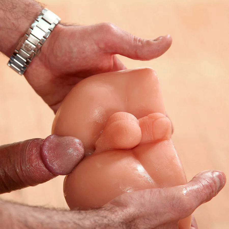 Give it to him doggy-style! David is a ready bottom who wants to receive all of your man meat any time, day or night! This lifelike masturbator is made from super realistic SexFlesh material that will make your fantasies come to life, but unlike other bulky, unwieldy toys, David comes in a compact, portable size that is easier to maneuver and perfect for discreet storage. His muscular cheeks are flexed in anticipation of your cock and his detailed shaft and balls hang just below a tight, waiting hole. David is ribbed inside for additional pleasure, and has a through-hole for easy clean up. Grab some lube and take this little man-whore for a ride!