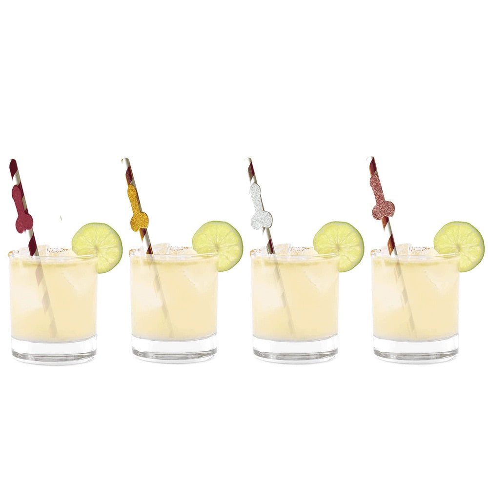 Our 5-inch paper cocktail straws have a beautiful metallic stripe and a non-shedding glittery penis applique. Each pack of eight straws (gold, silver, rose gold, and bronze) is made of high-quality materials and is on-trend for the bachelorette season. Complete the look with coordinating Glitterati balloons, plates, napkins, and more!