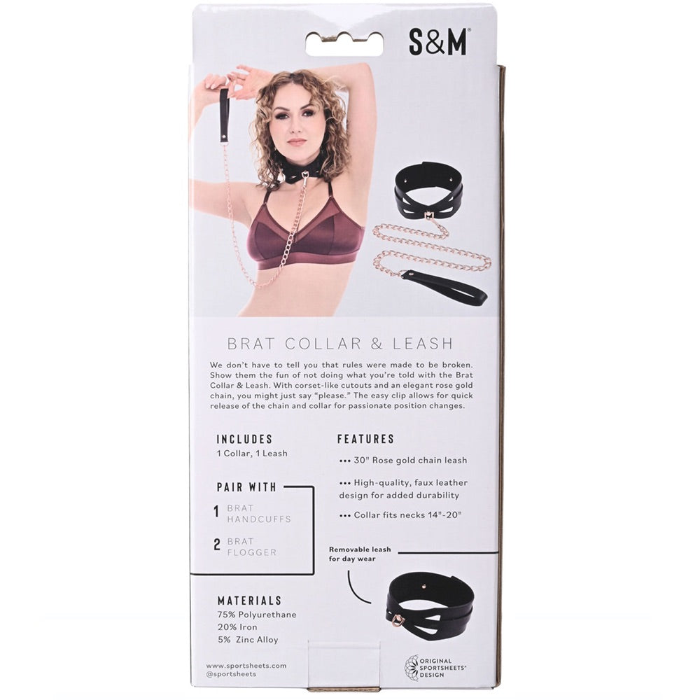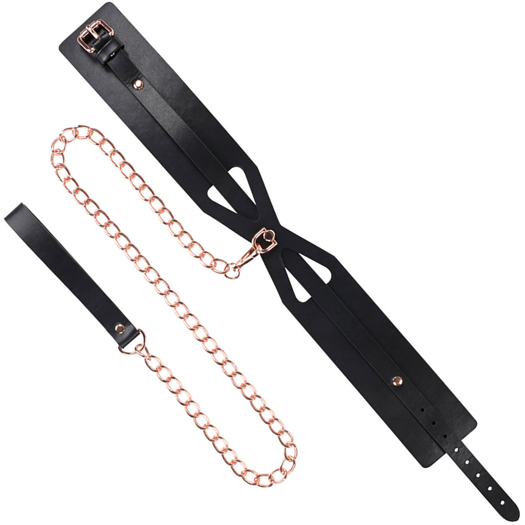 We don't have to tell you that rules were made to be broken. Show them the fun of not doing what you'retold with the Brat Collar & Leash. With corset-like cutouts and an elegant rose gold chain, you might just say "please". The easy clip allows for quick release of the chain and collar for passionate position changes.