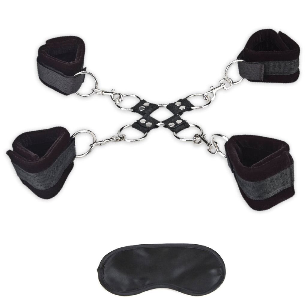 Take your bondage fantasies to the edge with the Lux Fetish 5-Piece Soft Cuff Hogtie. Whether you’re a BDSM beginner or an experienced player, this hogtie set from Lux Fetish is an essential accessory that offers versatility as well. Offering five detachable pieces, this hogtie features a four-way central O-ring connector that connects all four cuffs to comfortably restrain a partner from behind. Each cuff is velvet-lined for a soft feel against the skin, and is fully adjustable with Velcro closures. Each cuff is attached to a quick-release fastener that can easily clip onto the hogtie’s central O-ring connector or to any other compatible bondage gear. Turn up the excitement by using the included blindfold to include some sensory stimulation in your bondage play.