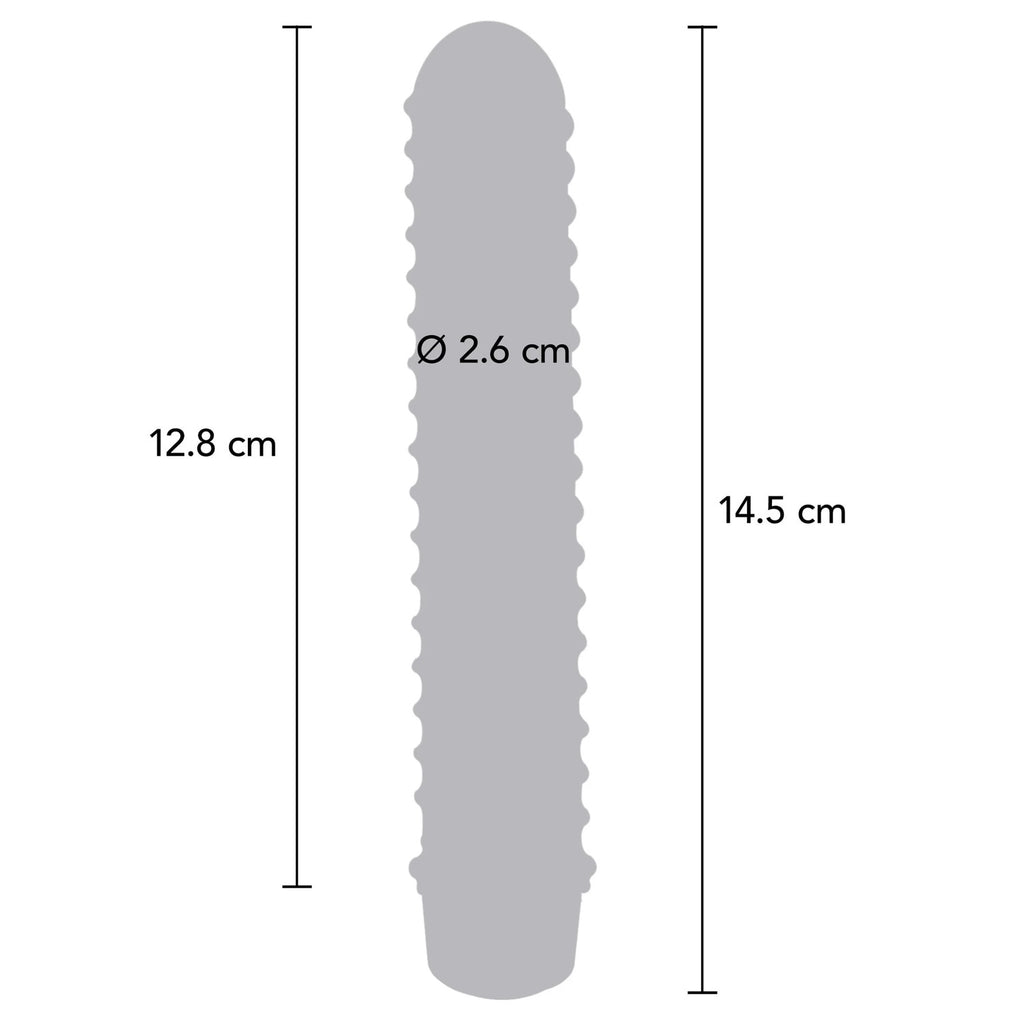 | Measurements: | Total length 14.5 cm / 5.7 inch, Insertable length 12.75 cm, Insertable diameter 2.6 cm |