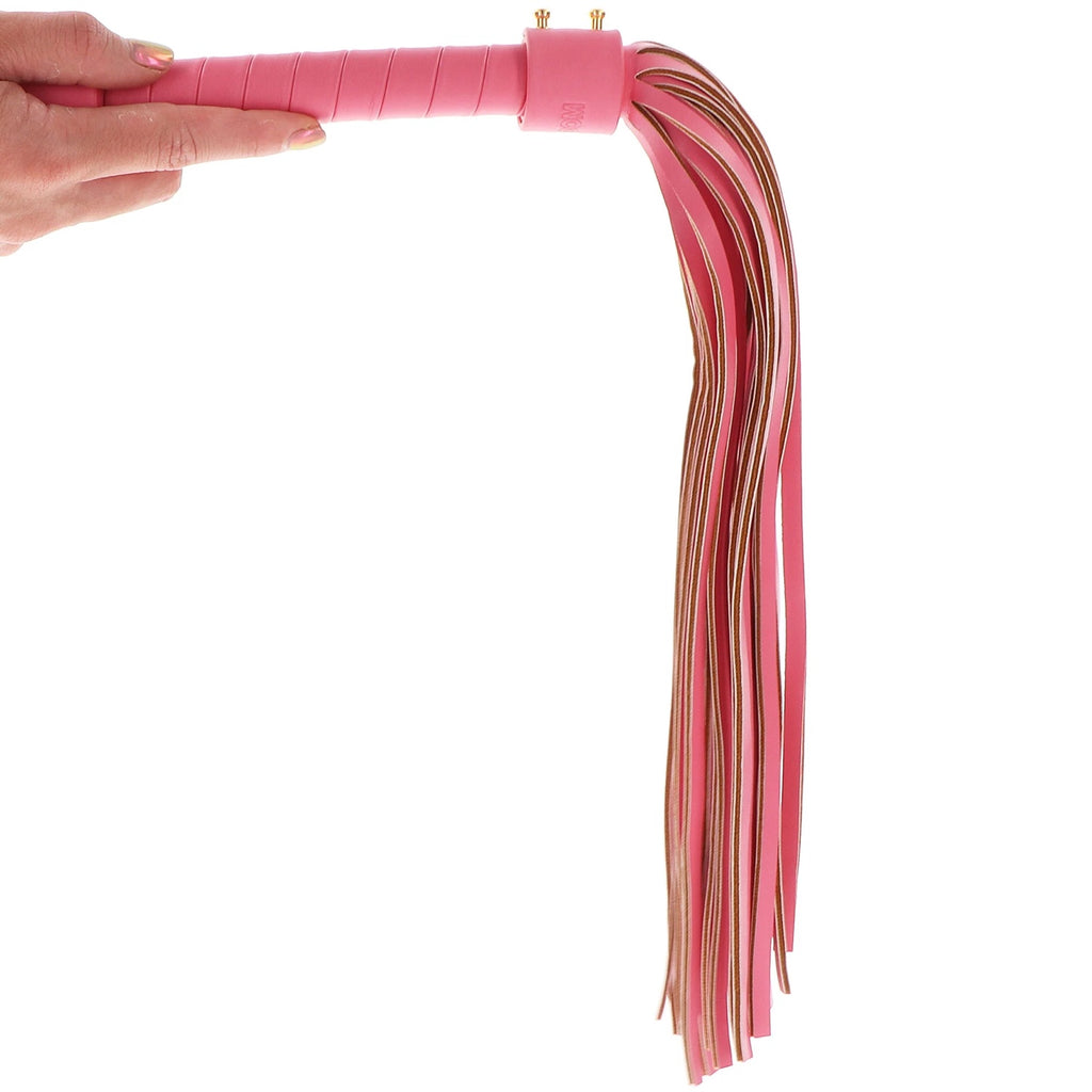 The Taboom Malibu Whip is a cute, sexy, pink-colored bondage accessory made of vegan PU leather. Explore sensual dominance/submission play with passion and pleasure. Unleash your desires and indulge in captivating play with this alluring whip.