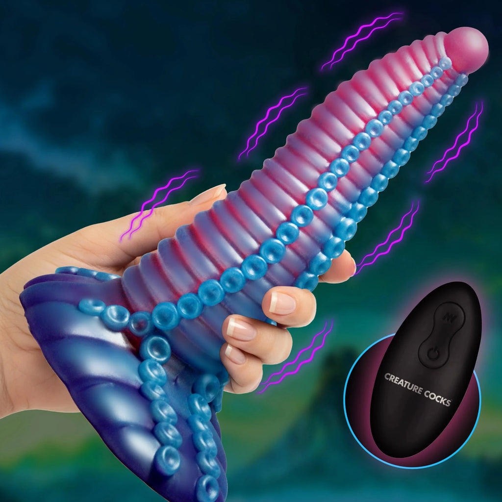 Explore thrilling textures with this dynamic tentacle-inspired creation! Its gradually widening shape with a rounded ball tip delivers tantalizing sensations. Rows of smooth bumps paired with strategically placed suckers turn up the pleasure with each inch. Designed with a secure suction base, this versatile toy allows hands-free exploration, and the textures at the base offer even more options for stimulating play as you rub against them. Feel the excitement as 3 steady speeds and 7 teasing patterns of vibrations send waves of pleasure through the firm, flexible body-safe silicone. Use the remote for effortless transitions and add excitement to your solo adventures or intimate moments with a partner.