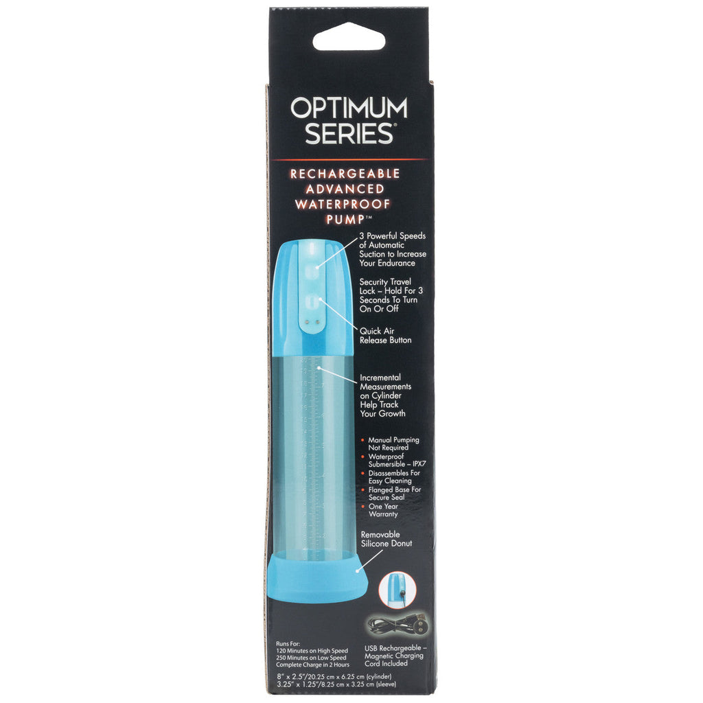 Recharge with the included magnetic USB charging cord, a full 2-hour charge delivers up to 120 minutes on high speed and an impressive 250 minutes on low speed. The Optimum Series Rechargeable Advanced Waterproof Pump is your ultimate tool for achieving peak performance, pleasure, and confidence.