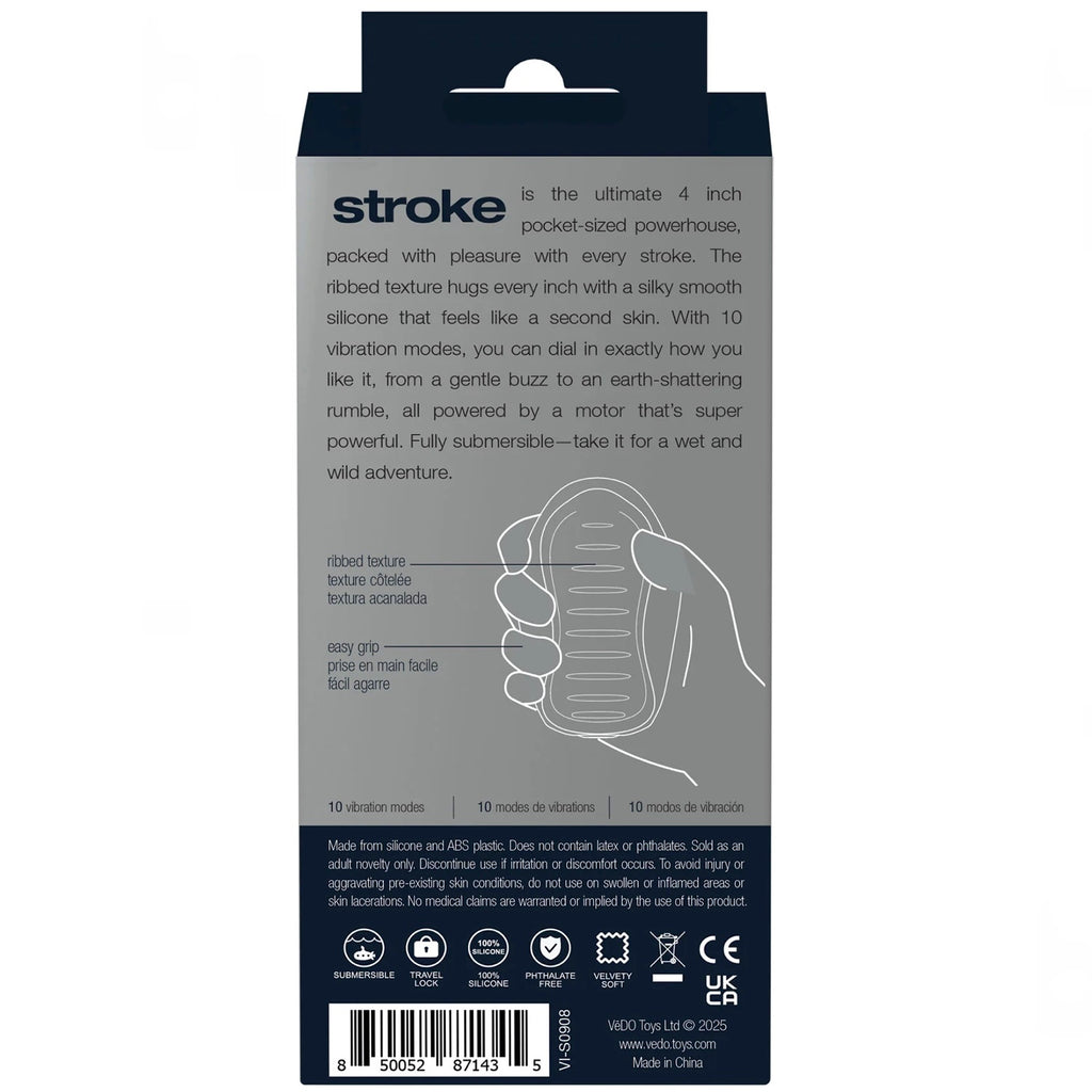 STROKE is the ultimate 4” pocket-sized powerhouse, packed with pleasure with every stroke. The ribbed texture hugs every inch with a silky smooth silicone that feels like a second skin. With 10 vibration modes, you can dial in exactly how you like it, from a gentle buzz to an earth-shattering rumble, all powered by a motor that’s super powerful. Fully submersible—take it for a wet and wild adventure.