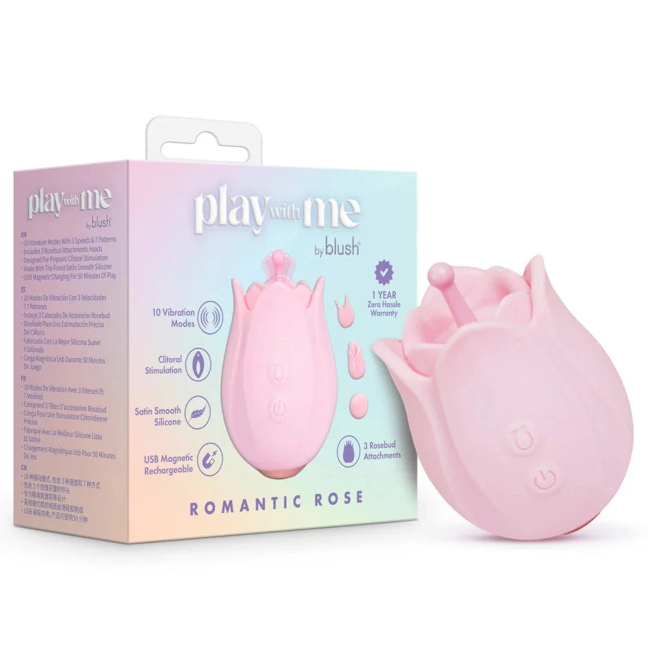 Play With Me Romantic Rose Rechargeable Vibrator With Rosebud Attachment Heads