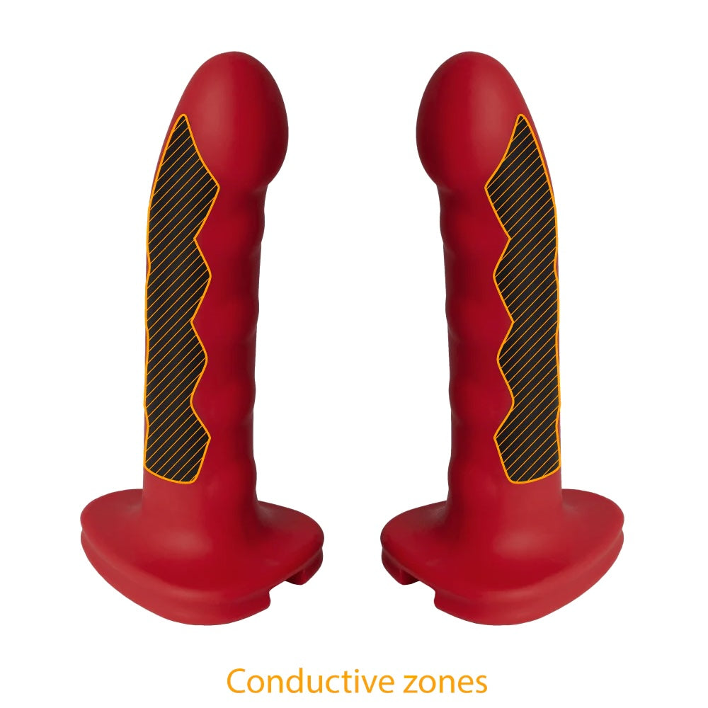 ‘Komodo’ is the first silicone strap-on dildo in the ElectraStim range and has a wide variety of uses for both vaginal and anal electro play. Made from smooth and sleek medical grade silicone in Silicone Fusion's distinctive spicy shade of red, Komodo’s striking ridged design highlights the conductive areas along the shaft for increased awareness of where the stimulation is targeted.