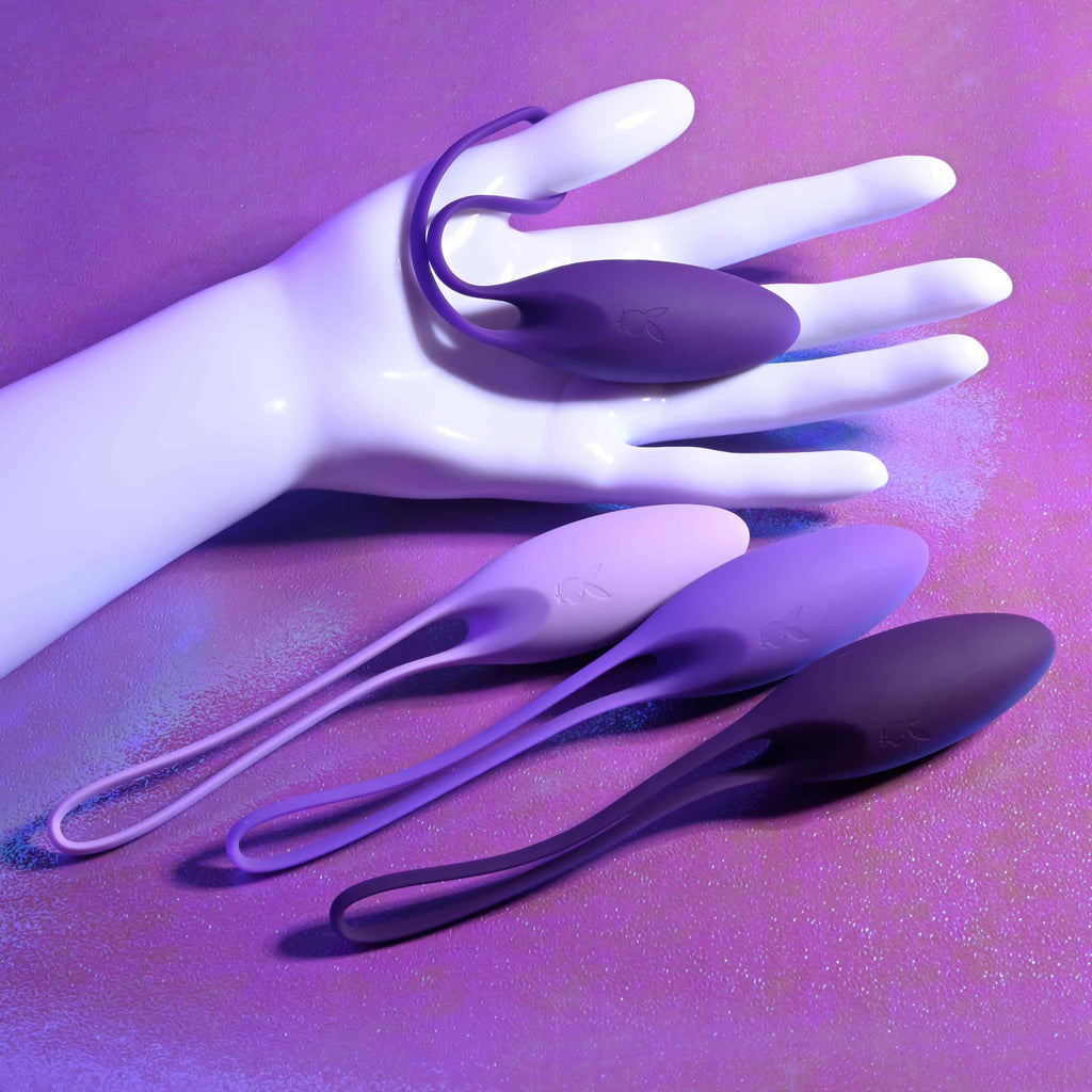 Put In Work and more intense orgasms and stronger pelvic floor muscles are yours. This 4-piece Kegel Ball set strengthens and tones. Each egg-shaped weight is made of steel and wrapped in velvet-smooth silicone. Each weight is color-coded in gorgeous shades of pink, from pale pink (lightest weight) to hot pink (heaviest weight) so you can track your progress. Each weight has a retrieval cord for safe and easy removal.