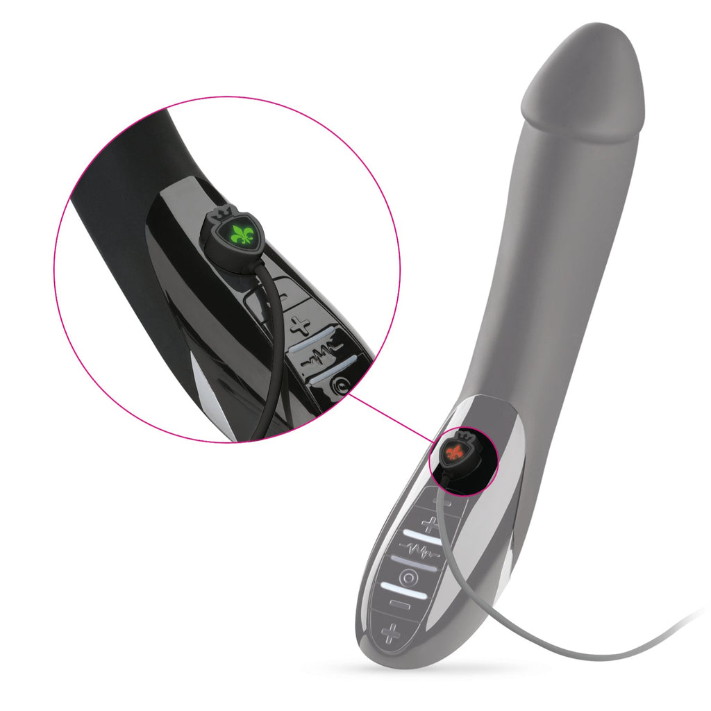Each of the five stimulation current programs of the E-Stim vibrator is designed to give you a new tingling sensation. Tickling Truman's conductive surfaces run lengthways along the sides and have 10 different intensity levels to make the stimulation as widespread and even as possible.