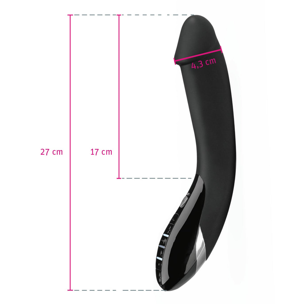 Your cry for love will be heard: Tickling Truman is ready to stimulate you and pamper you with vibration and stimulation current at the same time. Because double is better. Without a stimulation current device or cable, the all-rounder vibrates, tingles and pulsates lustfully inside you. The smooth 27 cm long and up to 4.3 cm wide silicone body of the E-Stim vibrator makes you tremble wonderfully - you get as hot as a volcano. What more could you want?