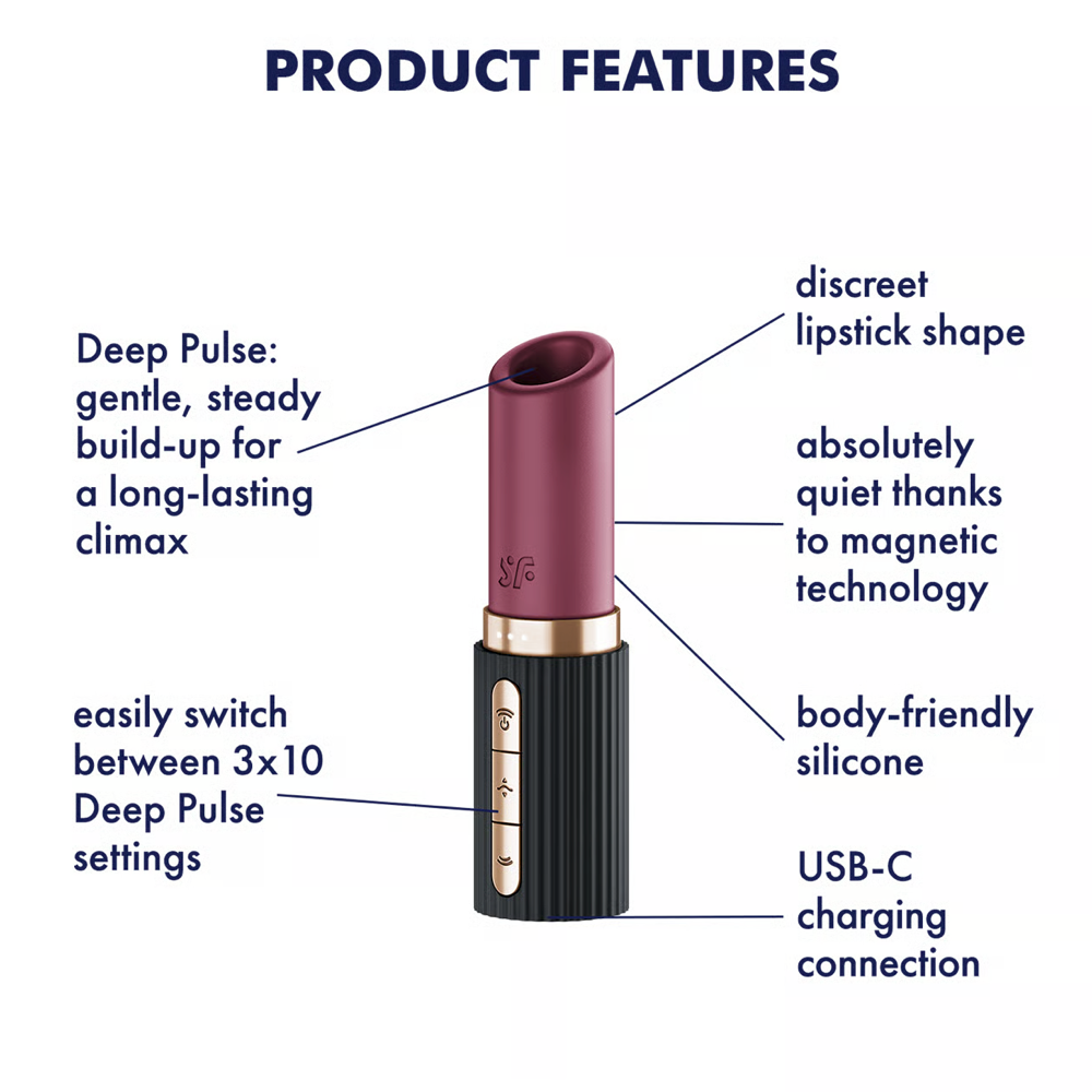 Discover the ultimate kiss: The Deep Kiss combines discreet design with touch-free Deep Pulse Stimulation. Unlike classic Air Pulse Vibrators, the Deep Kiss provides stimulation that builds up gently, stimulating the entire clitoris and leading to a more intense, long-lasting climax. Take your time – it's worth it!