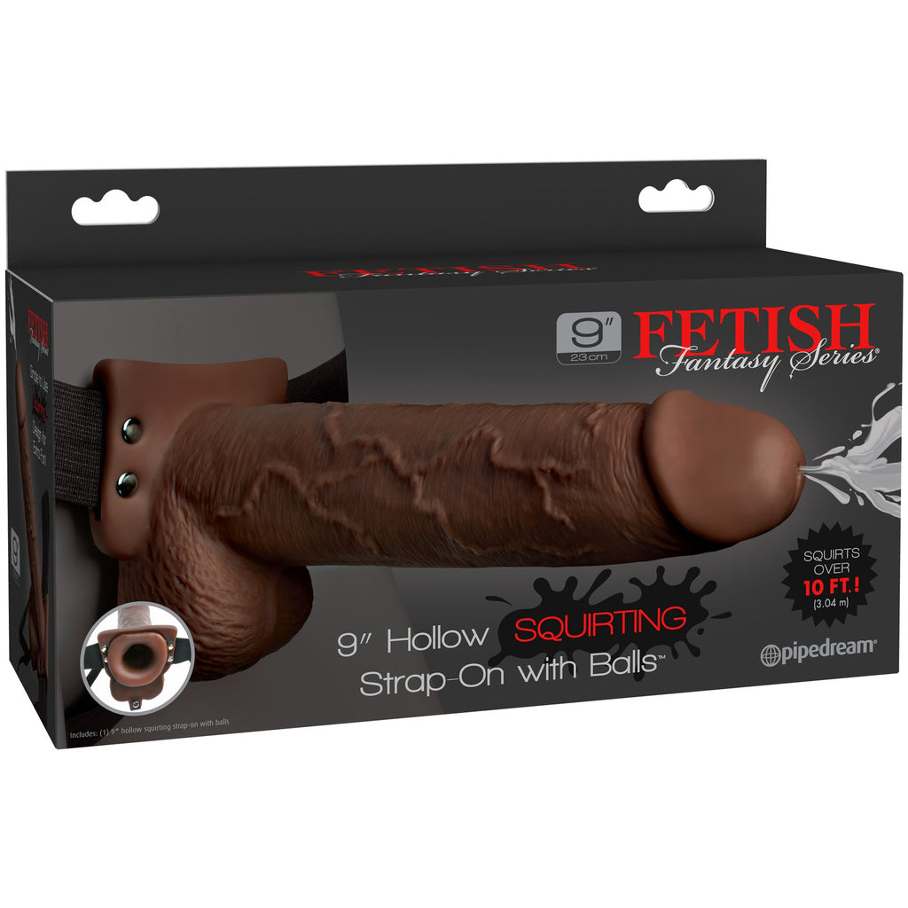 Fetish Fantasy Series 9" Squirting Hollow Strap-on with Balls - Brown