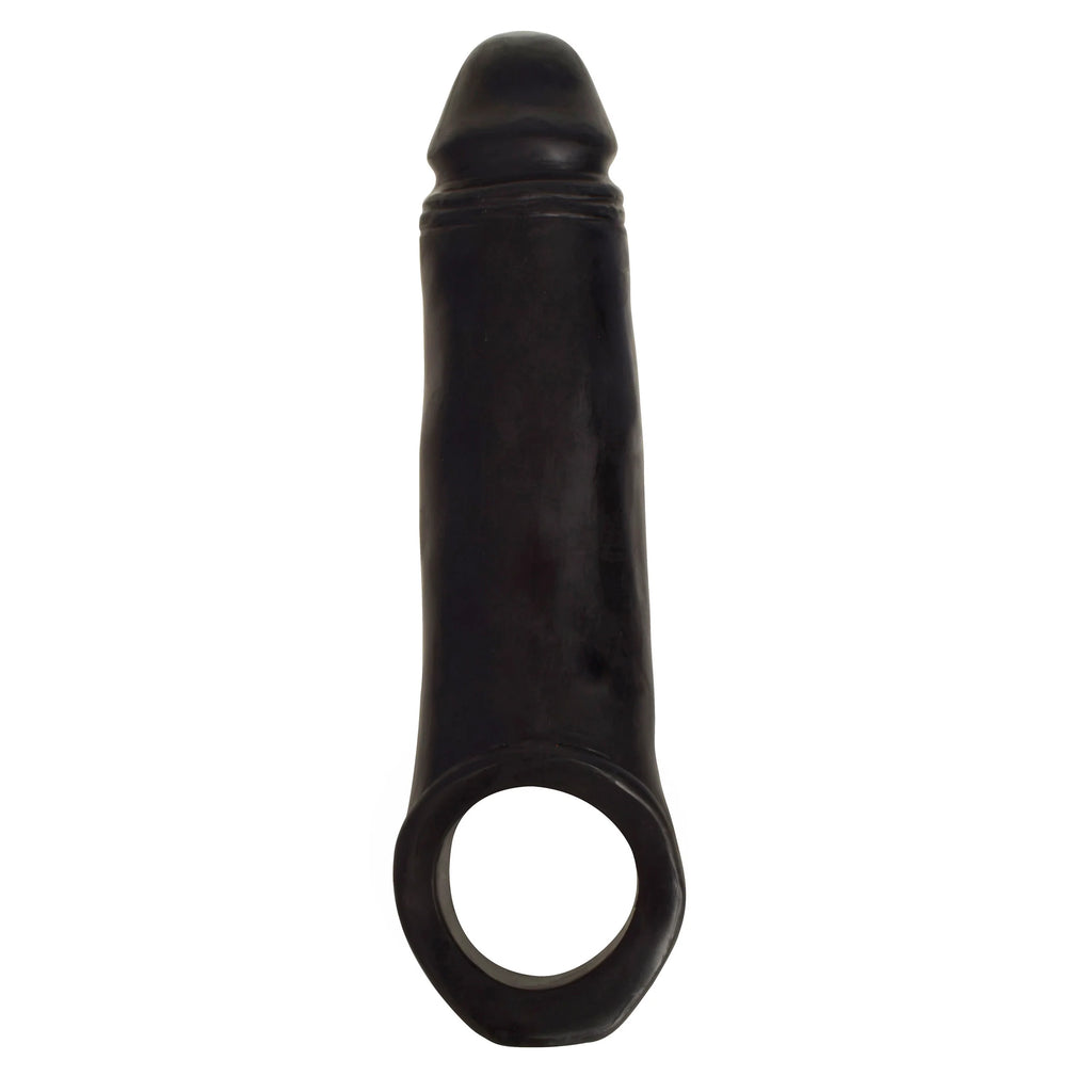 Experience the joy of extra length and girth with this slip-on erection enhancer. Made in the USA from enhanced PVC that is both latex-free and phthalate-free, you can be confident that you are using a quality and body-safe toy. A realistic cock heads adds 2 inches of length to your penis while the ball strap keeps the sheath in place and creates a desirable tugging sensation. The snug fit helps to maintain your erection and delay ejaculation. This firm, yet pliable pleasure tool can be used with silicone or water-based lubricants and cleans easily with mild soap or toy cleaner.