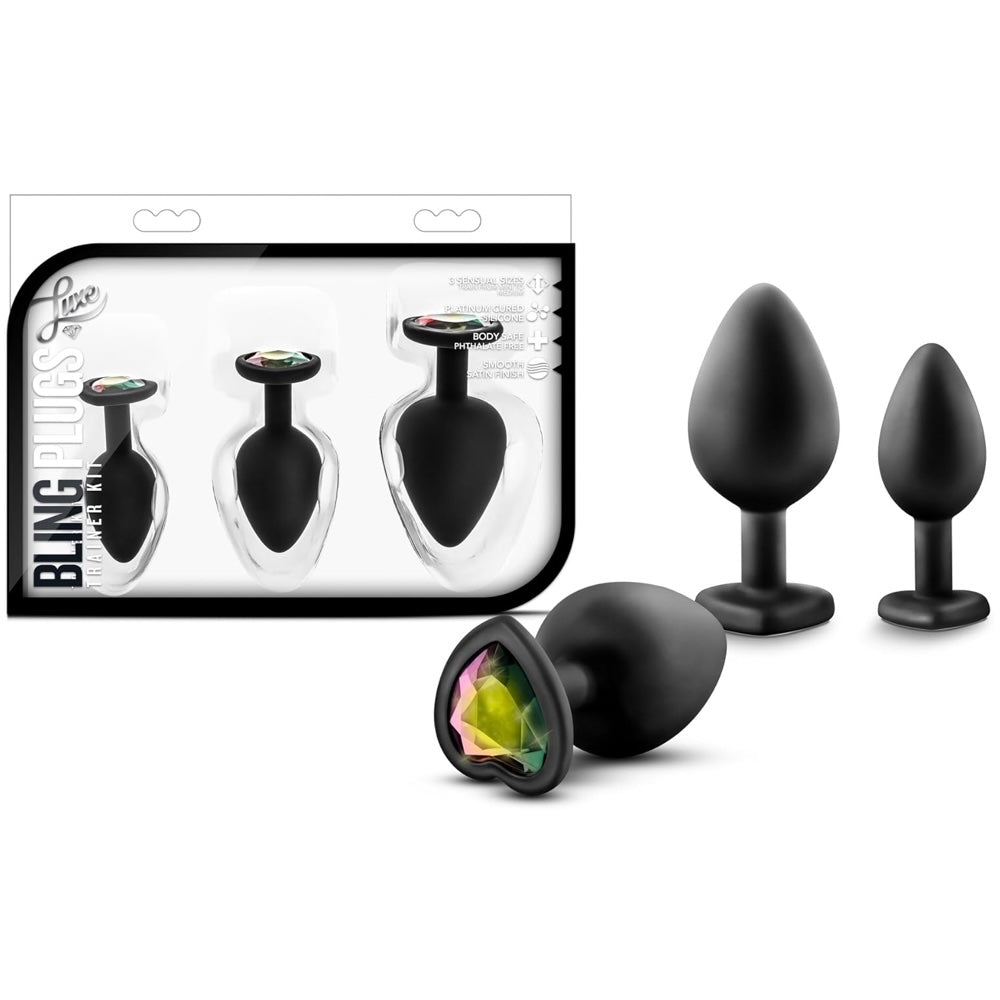 Luxe Bling Plugs Platinum-Cured Silicone Anal Training Kit - Black