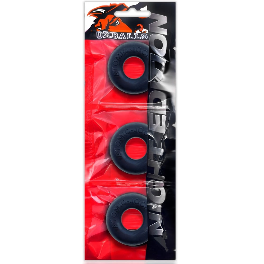 RINGER 3-pack cockrings in new NIGHT EDITION…velvety silicone finish PLUS+silicone™ blend, TPR for amazing stretch + silicone for a rubbery warm feel. NIGHT BLACK color is a deep dull-finish black that feels warm and silky-smooth, less grippy, it glides on…more like vintage black rubber—it looks rich and deep and feels super slick.