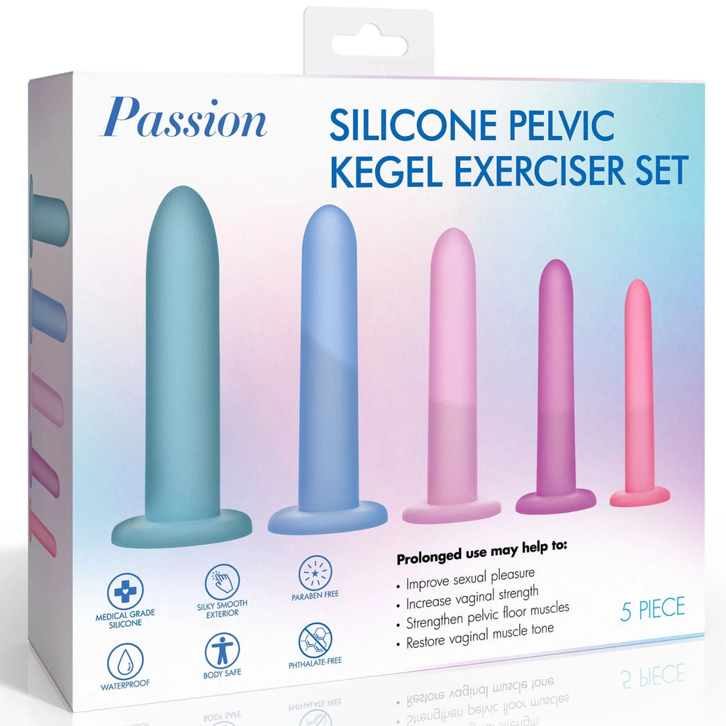 Introducing our premium-quality, body-safe silicone vulva dilator and kegal exercise set. Designed for gentle and comfortable use, each piece is made from silky smooth silicone that glides effortlessly with a touch of water-based lubricant. With five graduated sizes, this set allows you to build your confidence, strength, and control gradually, starting from the smallest size (Step 1) and progressing to the largest (Step 5). The smooth, tapered tip ensures easy insertion, and the suction-cup base lets you enjoy hands-free use on any flat surface. Perfect for those experiencing pain during penetration, these pelvic dilators can help you stretch your pelvic floor muscles and relieve tension effectively. They can be used to relax the muscles or, alternatively, you can squeeze them by doing kegels and strengthen the same pelvic muscles.