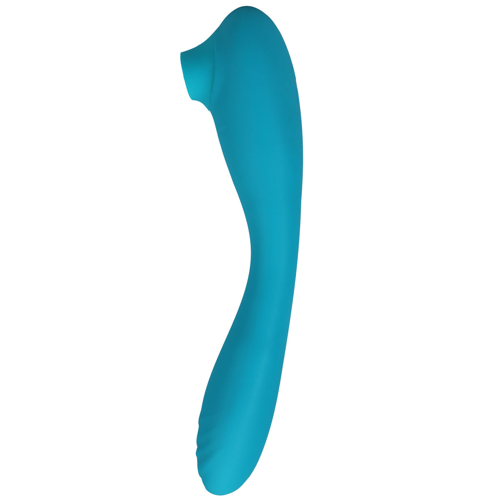 Get everything you need with this one handy arousal device. On each end sits an ultra-powerful motor: one for vibration and one for pulsating suction. The bendable shaft allows for easy positioning and comfort while using. It is USB rechargeable with the included cord and completely body-safe.