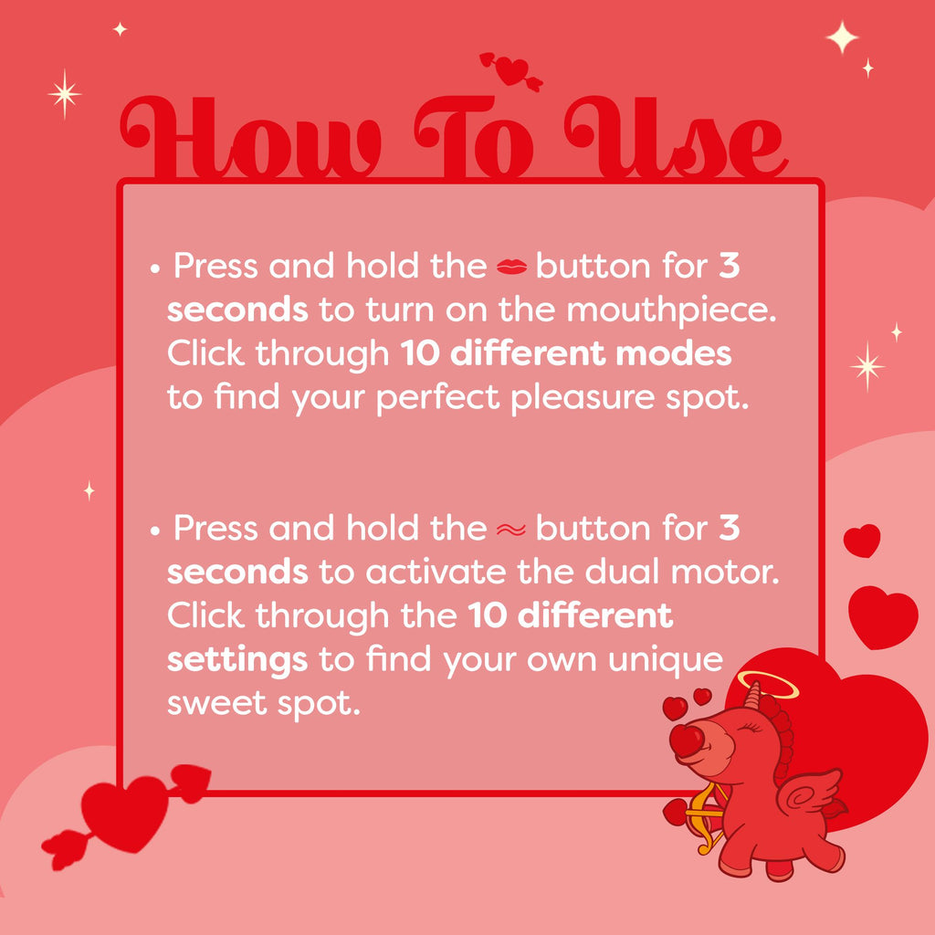 With its magnificent swirling muzzle and powerful vibrations, Cupid’s clitoral kisses are sure to deliver sweet, saintly orgasms. Choose from a wide variety of massaging movement and vibration patterns, and find a combination that hits the spot perfectly. The Unicorn-themed vibrator offers endless fun, and it’s so discreet, that it can be left on the side without prying eyes.
