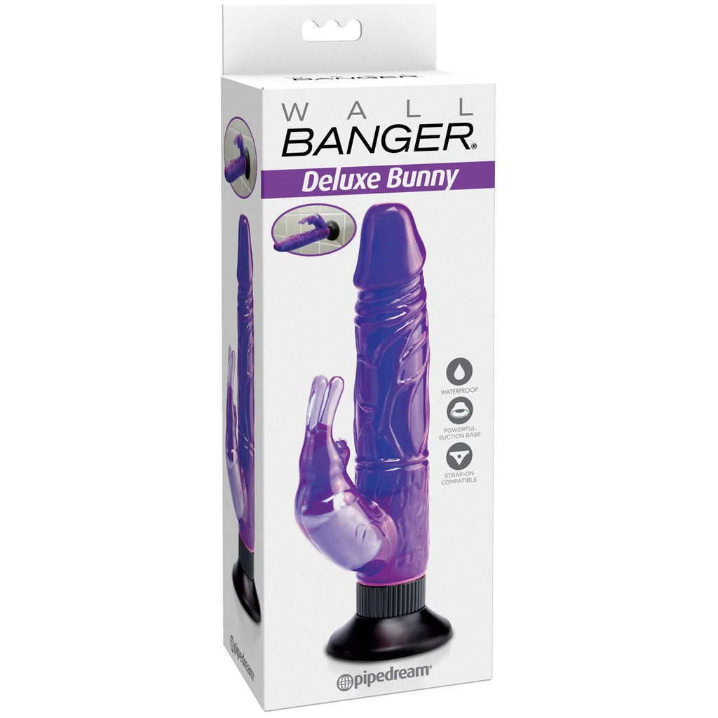 Enjoy wall-bangin' satisfaction every time with this incredible vibrating Deluxe Bunny suction dong with clitoral stimulator.