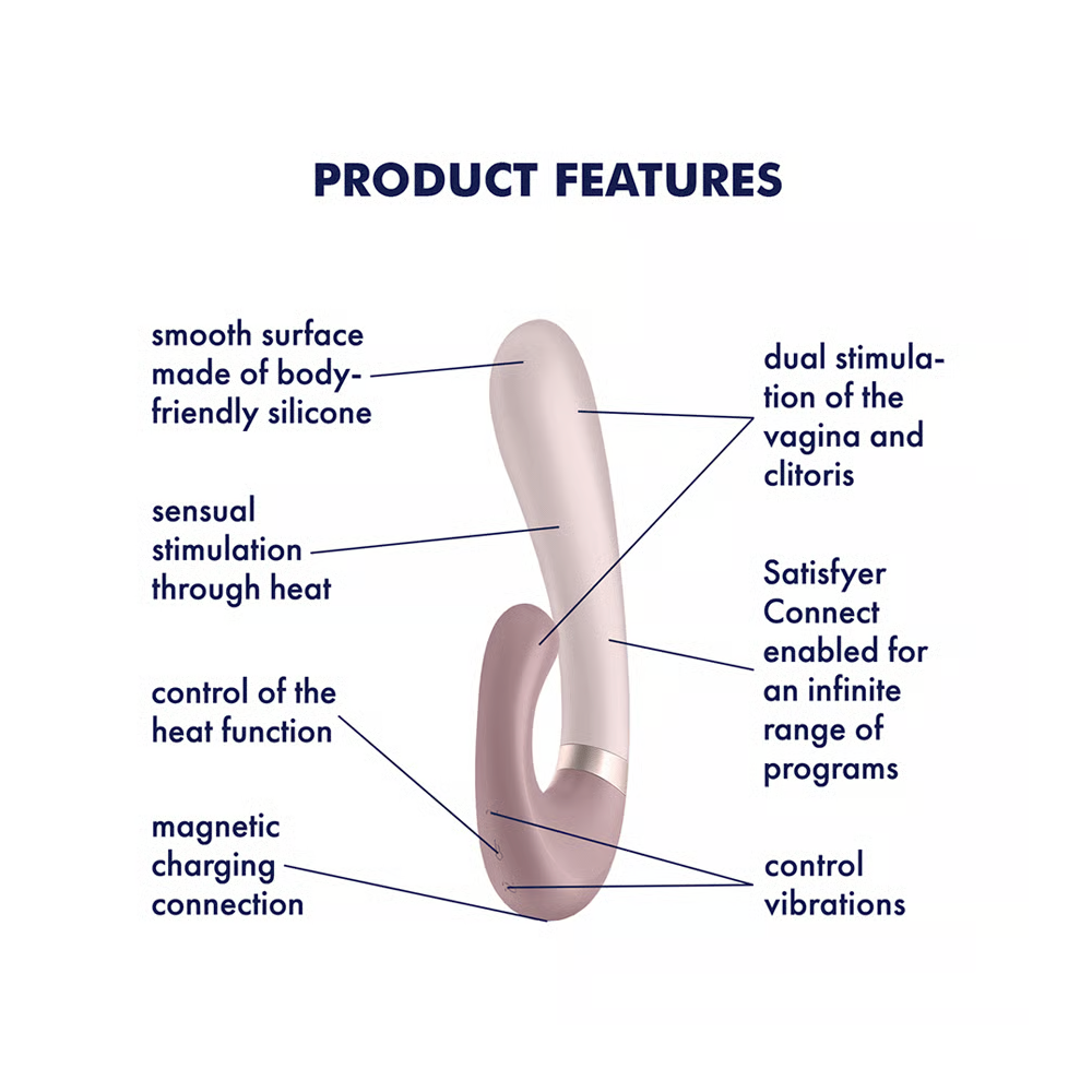 With its surface made of tender, medical-grade silicone, this heated vibrator has a particularly loving touch while pleasuring you. In addition to the 12 preset vibration programs, you can use the free Satisfyer Connect app for Android and Apple iOs to customize the Satisfyer Heat Wave according to your needs. Create your own programs, give your partner the control or connect the app to Spotify to let yourself be stimulated to the rhythm of your favorite songs.