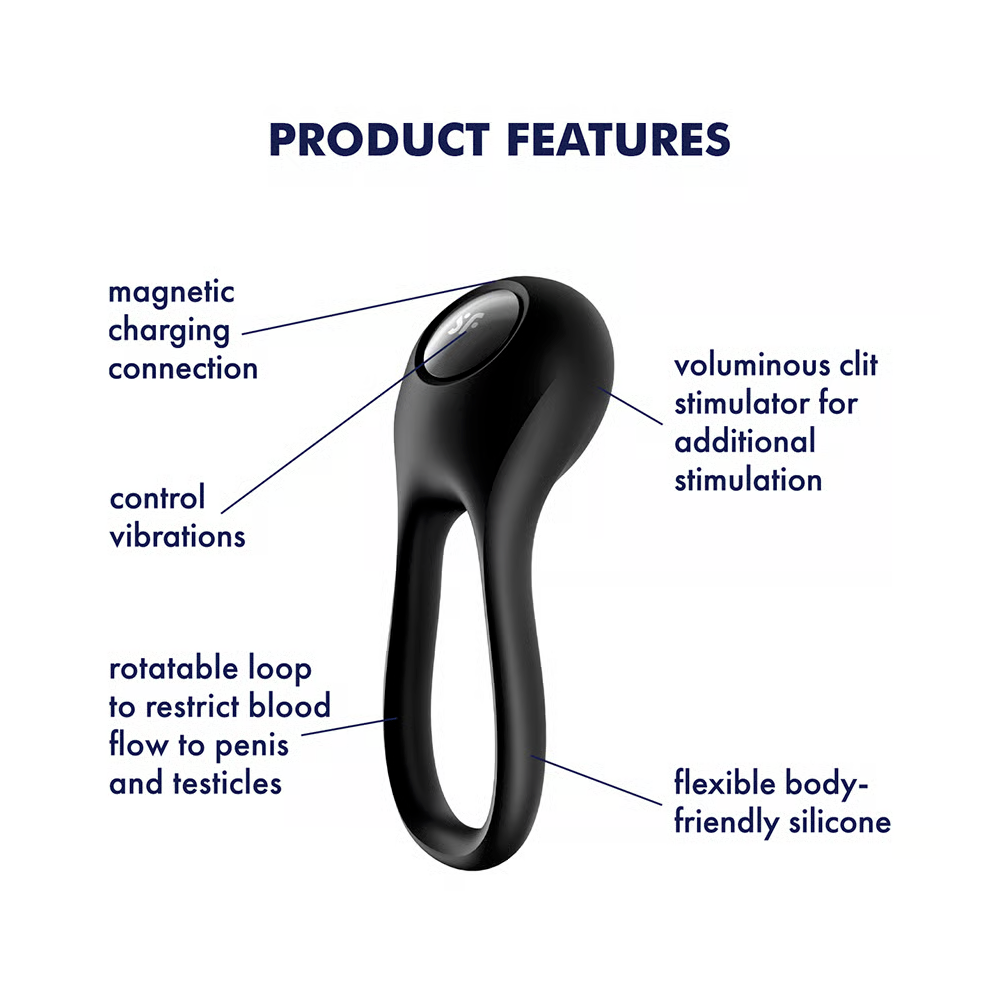 While the Satisfyer Majestic Duo excitingly restricts the blood flow in your penis and testicles, the clitoral stimulator on this vibrating cock ring boasts 12 tantalizing vibration programs to pleasure your partner. These can be easily controlled using the one-touch button on the front.