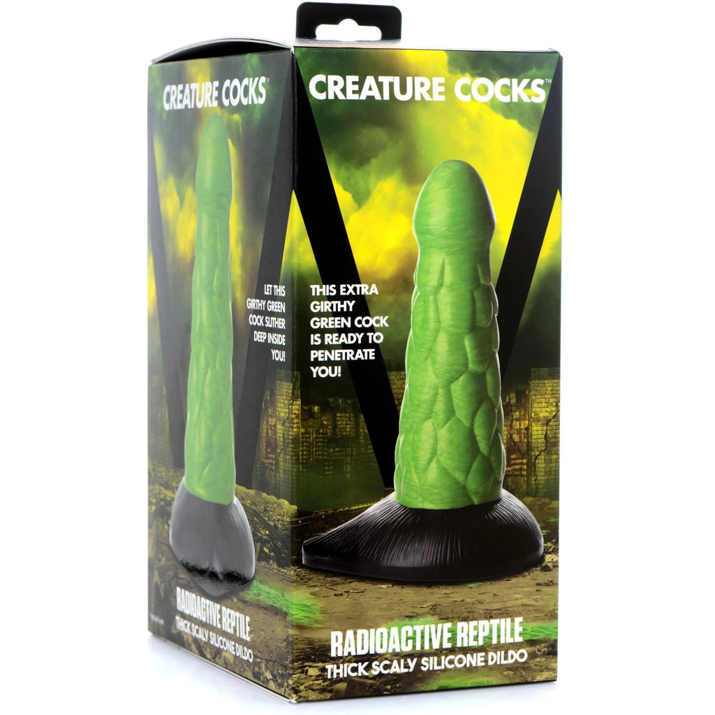 この放射性爬虫類ディルドは、厚みがあり、鱗状になっています。メタリックグリーンのカラーとブラックのベースが、ドラゴン、爬虫類、ワニといったファンタジーロールプレイングシーンを完璧に演出します。幅広のフランジ付きベースはハーネス対応なので、ペニスバンドと併用できます。また、底部には吸盤ベースが付いているので、ハンズフリーでライディングできます。水性ローションのみを使用してください。プレミアムシリコン製で、人体にも安全で、フタル酸エステルは使用していません。