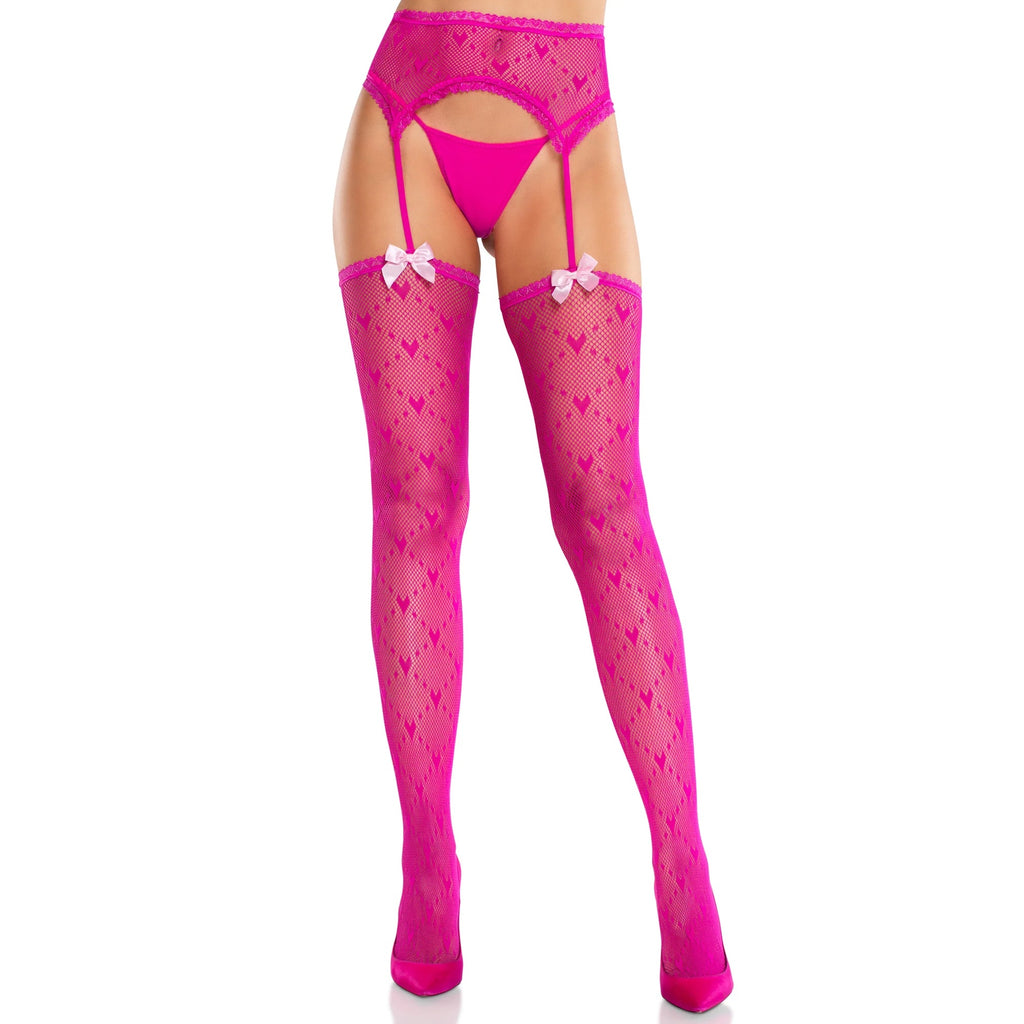 Leg Avenueのハートネットガーターベルトパンストで、あなたのセクシーな一面をアピールしましょう。繊細なハートのディテール、ミニハートのトリム、リボンのアクセント、そして付属のガーターベルトが特徴のこのストッキングは、デイタイムの甘い装いから、セクシーなランジェリーへと瞬時に変化します!