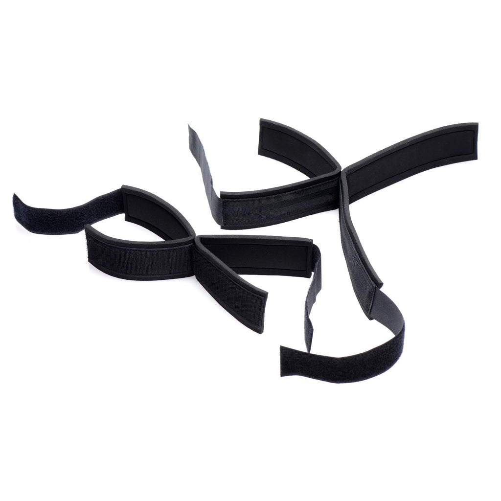 多用途で使いやすいボンデージストラップで、恋人の動きを制限しましょう!腕と脚を縛り付けておけば、どんな体位にも簡単に操れます!手首と足首を繋ぐための拘束具が2つ、膝と肘を繋ぐための拘束具が2つ付属しています。快適なストラップは内側にパッド入りのライニングが施されており、長時間の激しいプレイにも対応します。ベルクロストラップは完全に調節可能で、熱い瞬間に着脱するのも簡単です!