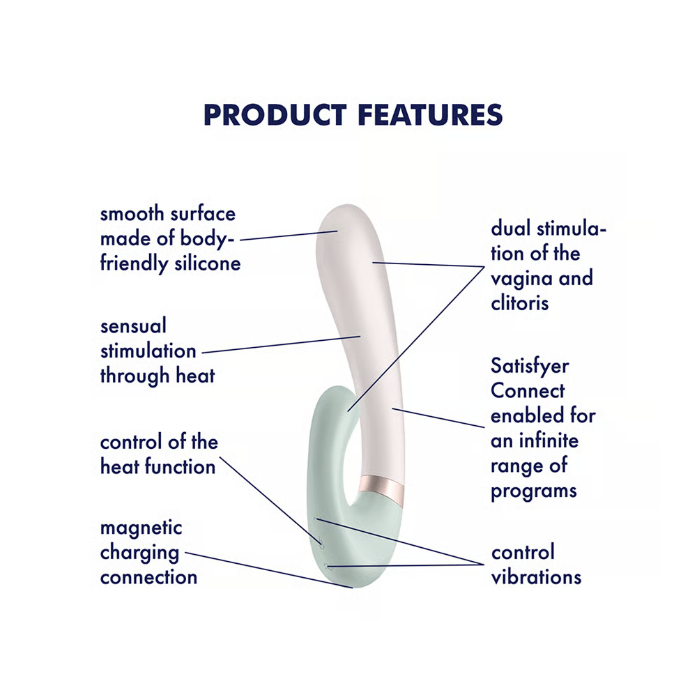 With its surface made of tender, medical-grade silicone, this heated vibrator has a particularly loving touch while pleasuring you. In addition to the 12 preset vibration programs, you can use the free Satisfyer Connect app for Android and Apple iOs to customize the Satisfyer Heat Wave according to your needs. Create your own programs, give your partner the control or connect the app to Spotify to let yourself be stimulated to the rhythm of your favorite songs.