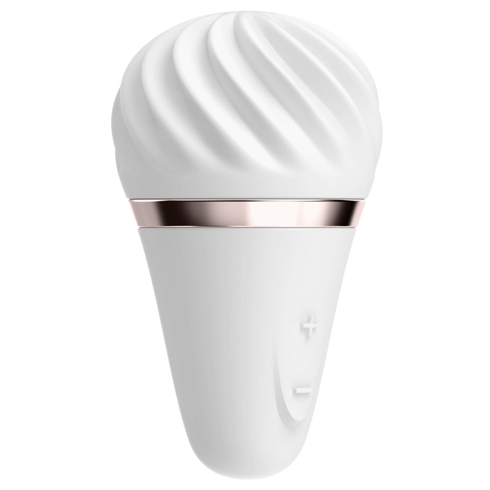 The Satisfyer Sweet Treat is probably the sweetest of all clit vibrators - because this ice cream cone has it all: It brings your clitoris to super sweet climaxes like never before with the rotating fins. Pleasantly soft, skin-friendly silicone nestles around your pleasure pearl and takes care of your sexual wellness with powerful devotion, no matter where you are. The  seductive cone fits comfortably in your hand - so you can easily control the 10 exciting vibration levels, consisting of 4 rotation rhythms and 3 right and left speeds each, using the +/- buttons.