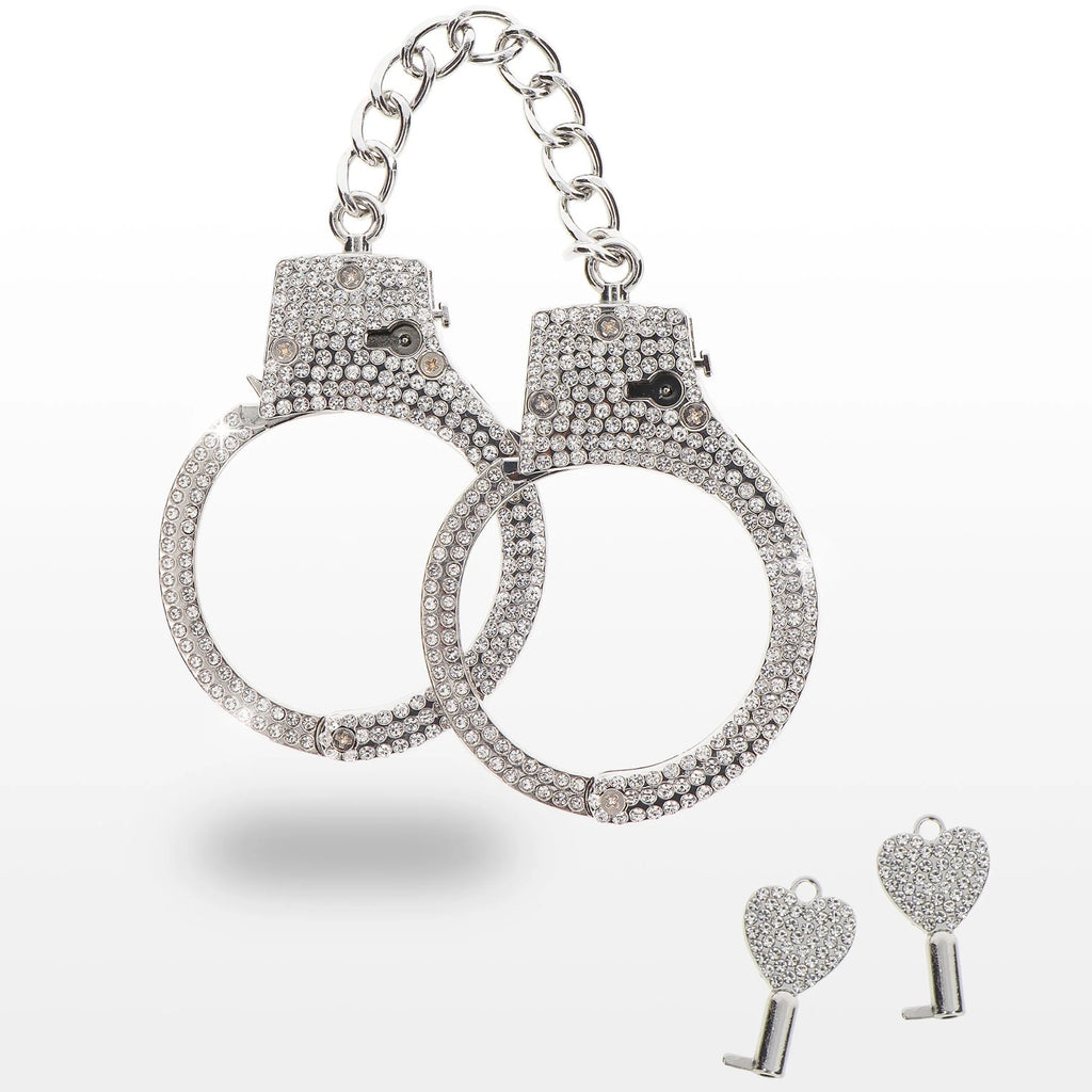 Stay in style and in control over your submissive with these heavy, silver-plated, with rhinestones encrusted handcuffs. The cuffs are adjustable. Including 2 keys and storage pouch.