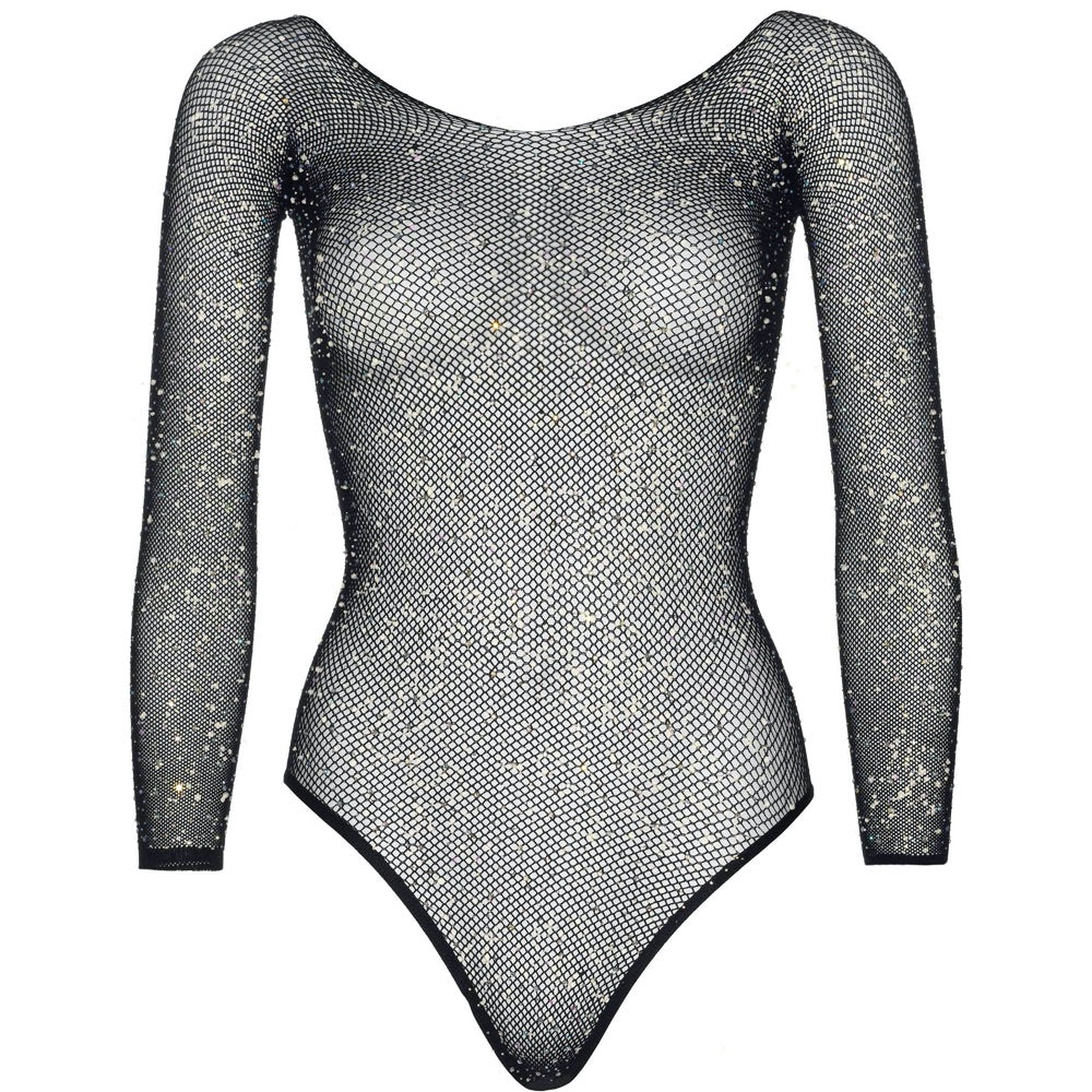 All eyes will be on you in this rhinestone fishnet bodysuit by Leg Avenue. A versatile and sexy lingerie piece, this one-piece must have features all over rhinestone detail on the long sleeved, snap crotch lingerie bodysuit. Perfect for layering as part of a festival outfit, under a blazer, or surprise your boo with a sexy night in.