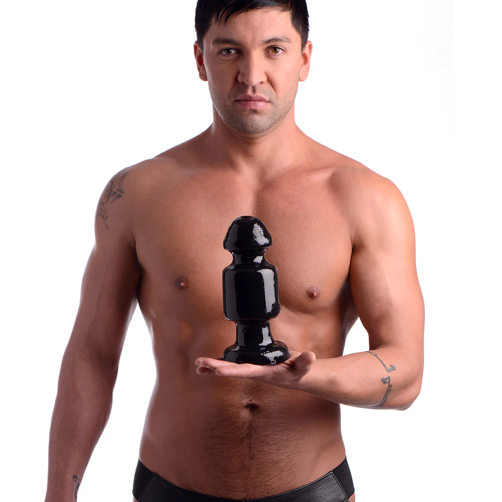 The Keg is an extremely intimidating butt plug. The impressive size and keg shape are sure to provide a challenge for your more extreme anal enthusiasts. The Keg plug is made from PVC for comfort and easy insertion. Flat sturdy, suction-cup base means you can place this on a flat surface and mount.