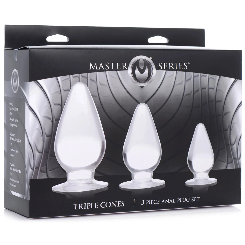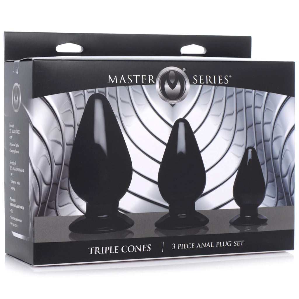 This set of Triple Cones features 3 dynamic sizes to plug you up! Long lasting toys designed to stay with you throughout your entire anal play journey - start off small and graduate to the medium and larger sized butt plugs as your mind and body get used to the new sensation of anal fill. Veterans and experts will appreciate the smaller plug for warming up and the largest plug for giving the satisfying anal stretch they crave!