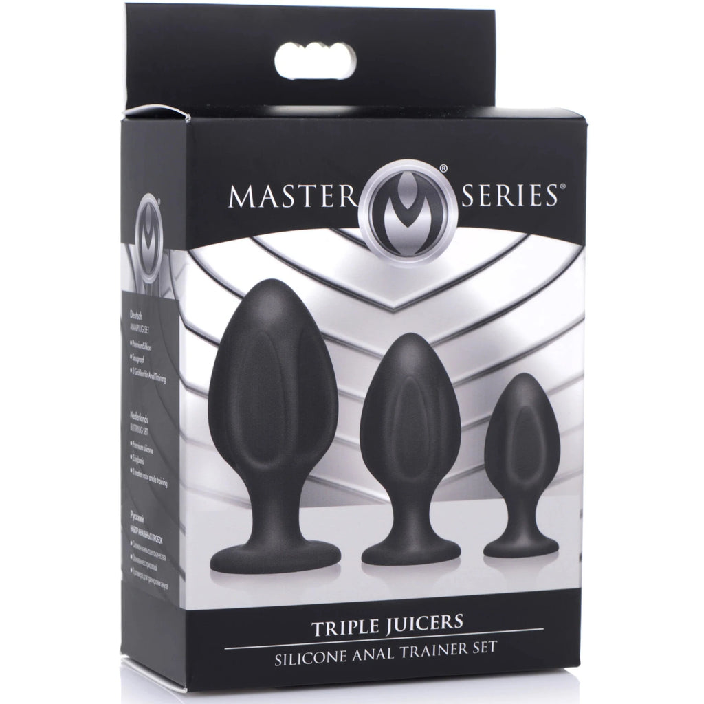 Three juicy anal plugs for all levels of backdoor play! Uniquely shaped for a provocative fill - the star shaped body provides high peaks and deep valleys for your backdoor to squeeze and enjoy. The cushy and squeezable silicone body provides an addicting fill, while the graduated sizing from small to large makes this trio perfect for all skill levels.