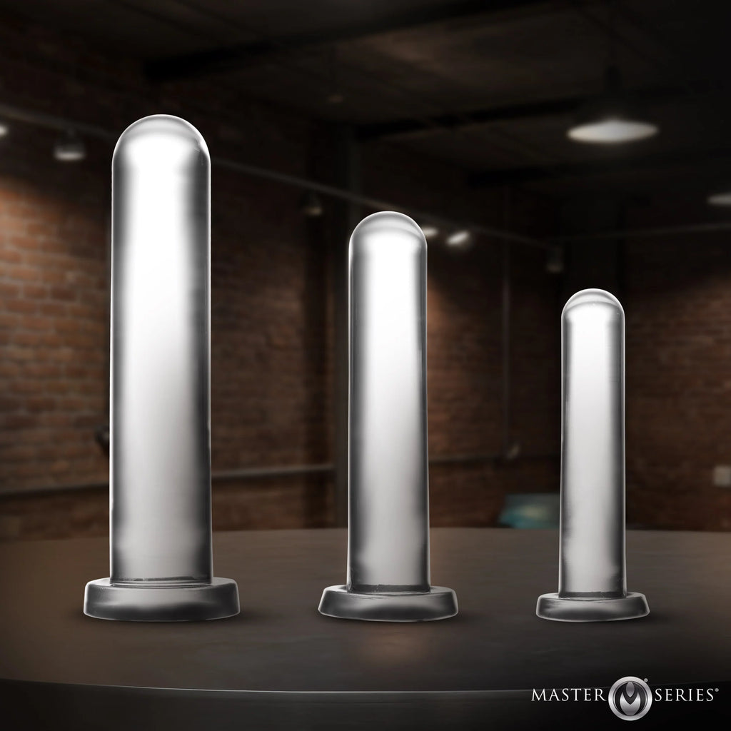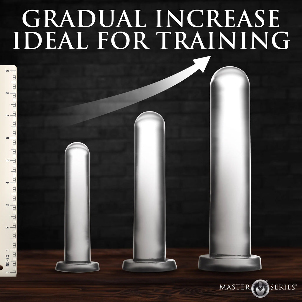 Experience new levels of comfort with this three-piece dilator set. Each one is crafted with a flexible, smooth surface that feels gentle while offering just the right firmness for comfortable stretching. With graduated sizing, you can easily advance at your own pace to find the fit that’s best for you. Made from premium phthalate-free TPE, these pieces are built to last and provide assurance with every use. Featuring suction cup bases, they stay securely in place, making exploration easy and convenient while giving you full control. Stretch and train your backdoor to accommodate a larger size at your own pace, speed, and comfort.