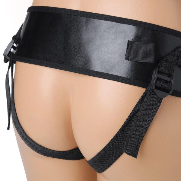 The adjustable harness fits most body types and stays secure through most body thrusts and body movements. The elastic straps keep things comfortable, while the nickle-free metal hardware is easy on the body and built for durability.