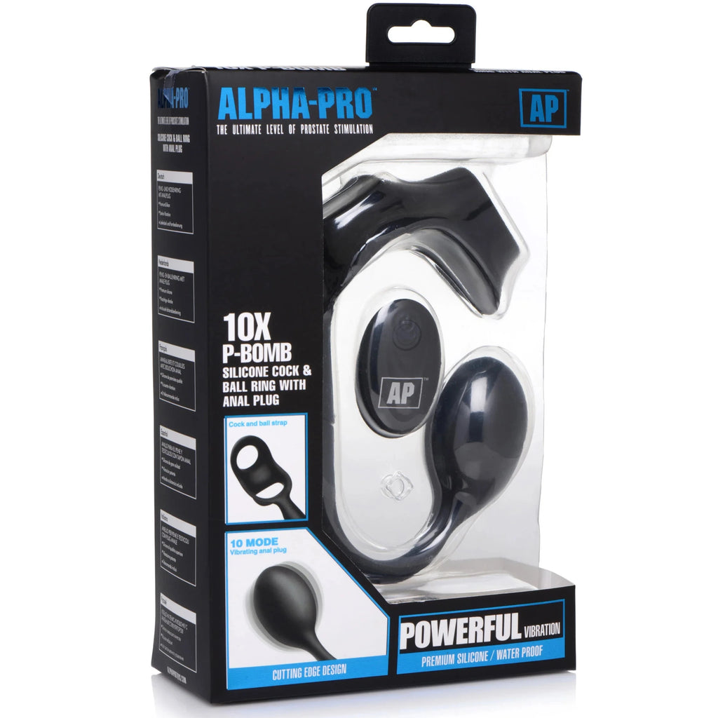 10X P-Bomb Remote Control Silicone Cock and Ball Ring with Vibrating Anal Plug