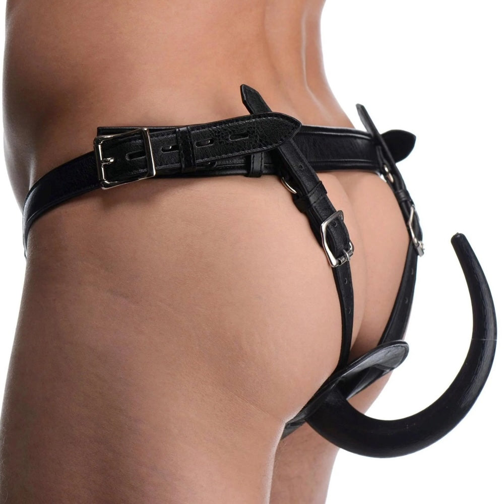| Measurements: | Harness adjusts to fit waists between 36 and 42 inches. Cock and ball diameter is 2.25 inches. Tail plug diameter is 1.5 inches. |