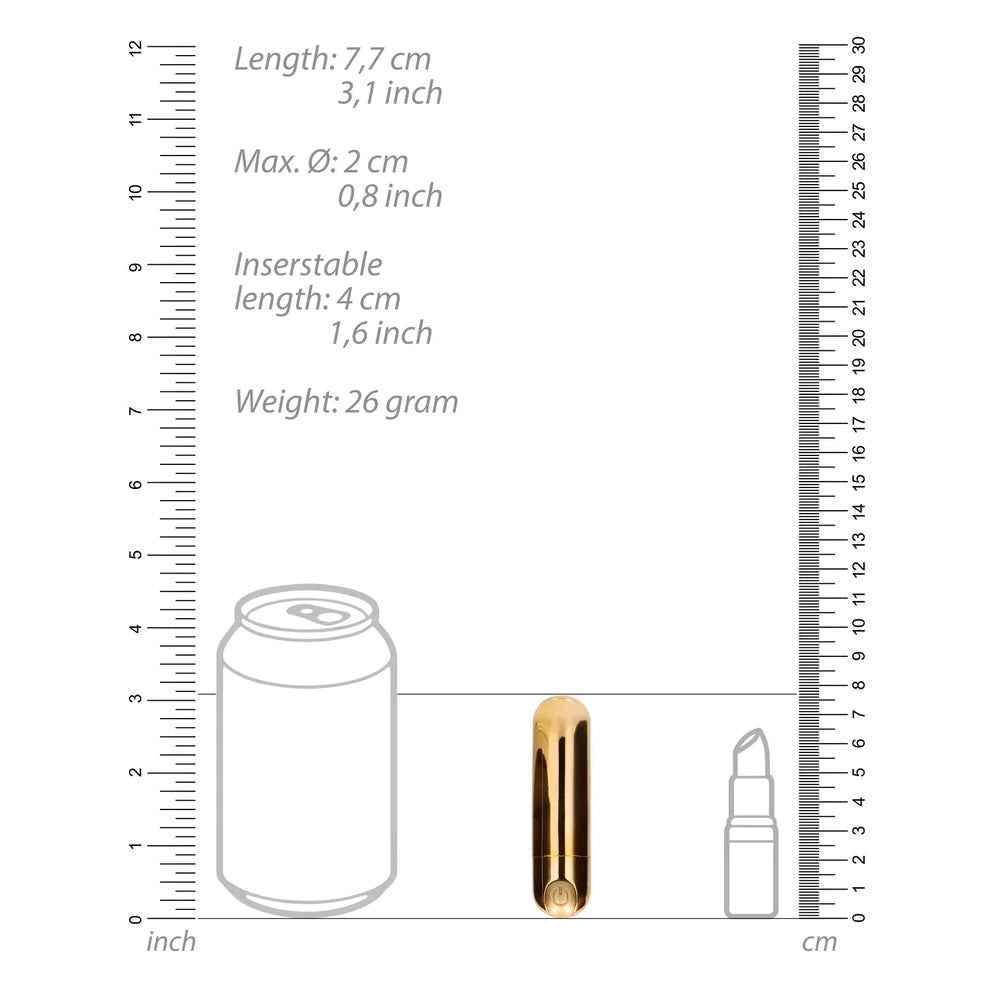 | Measurements: | This Mini Bullet Vibrator has a total length of 7.7cm (3.1"), 2cm (0.8") in diameter and weighs 26 grams (0.92oz) with an insertable length of 4cm (1.6"). |