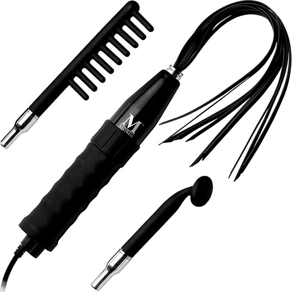 Sizzle the senses with electrosex! This Violet Wand set provides unique and intense sensations with silicone attachments that will not shatter like delicate glass. The mushroom-shaped accessory is ideal for sending pinpoint zaps of electricity into your slave or subs supple flesh. The comb features 9 teeth to transmit the current along a long strip of skin. Finally, the flogger will send a shock into them with every sensual stroke or swinging slap! The actual wand allows you to play with a wide range of power, from tingles to jolts. It features a silicone handle that enables a sturdy grip and a long cord that allows you to move freely around your playspace. Compatible with most violet wand attachments.