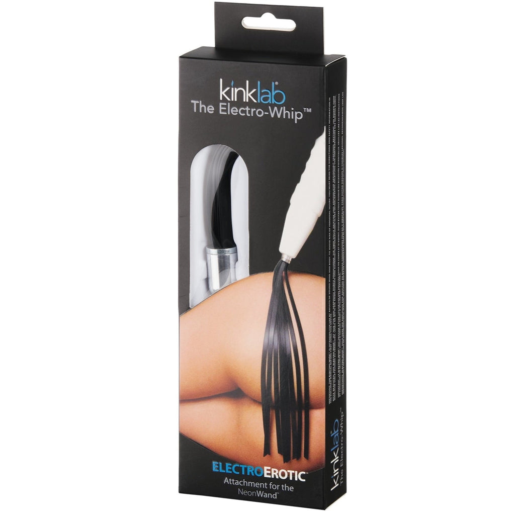 Power up your playtime with the Electro Whip, our latest KinkLab Neon Wand accessory, and the new addition to the ElectroErotic line. The Electro Whip combines a classic 10-tail mini-flogger with a connector that fits all models of the KinkLab Neon Wand, allowing the conductive black silicone falls of the flogger to become electrified, delivering a surprising shock along with the sting of the whip when used on your partner.