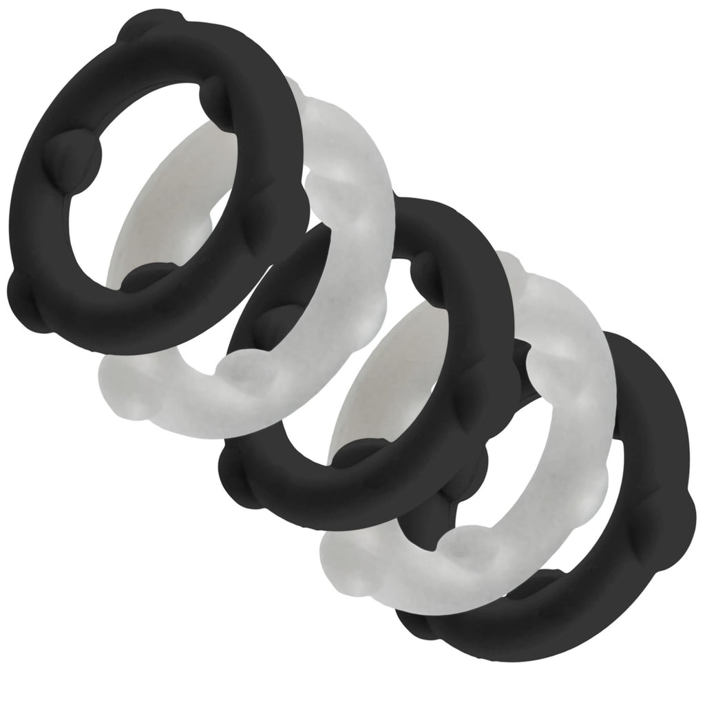 GEARHEADS 5-pack Ultra-Play Liquid Silicone Cockrings - Vapor/Black