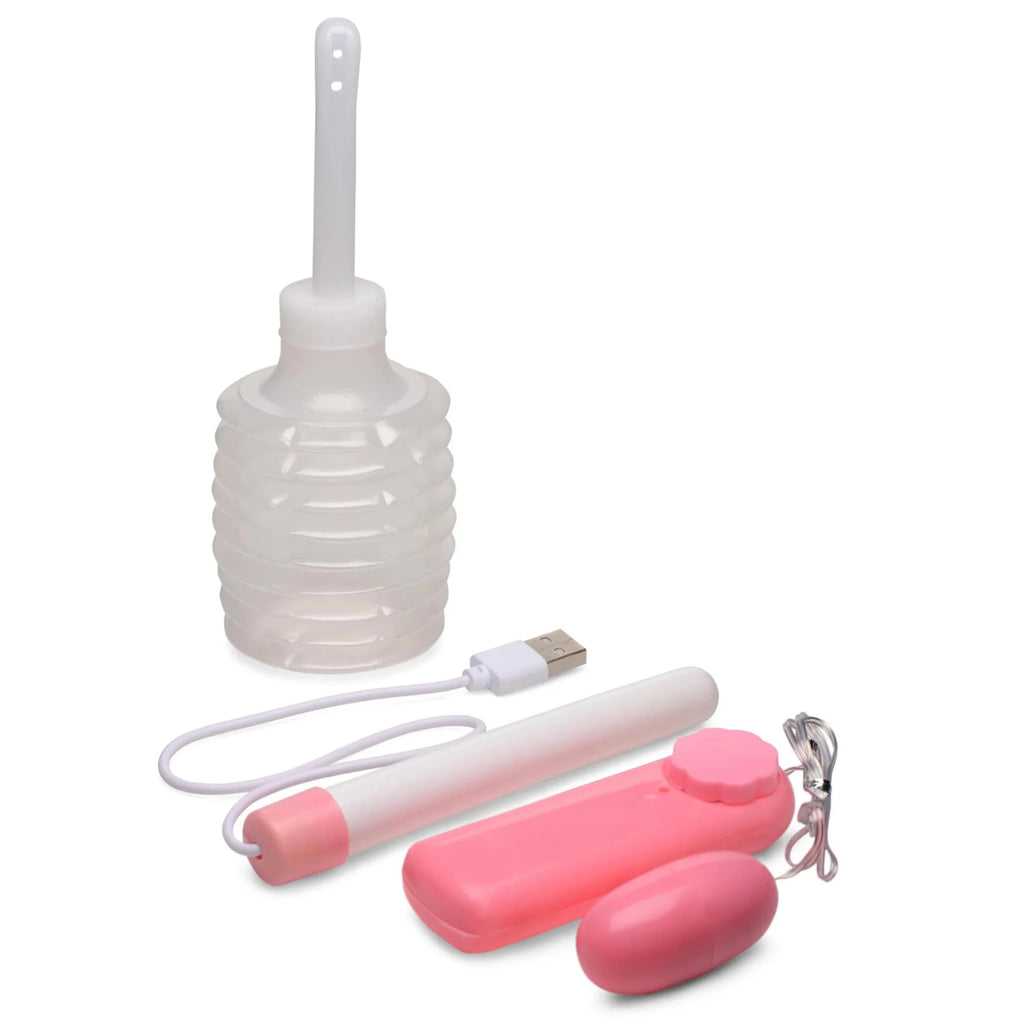 How to clean her Love Canals: After use, flush the canal with a mild antibacterial soap and water using an enema or douche bulb (included). Once clean, rinse canal repeatedly with clean water until all soap is removed. Once dry, lightly dust cleaned areas with 100 percent cornstarch.