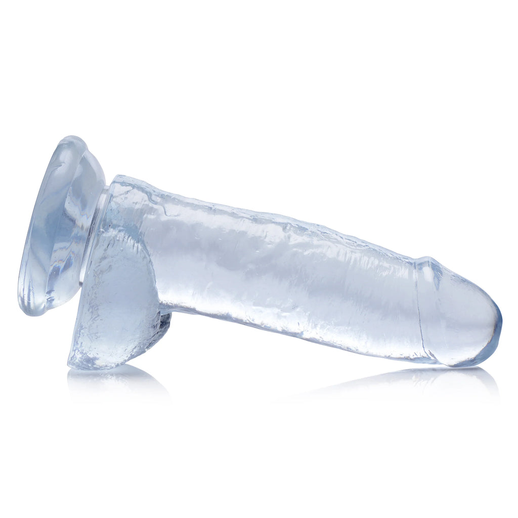 This crystalline cock is thick, clear, and hand crafted for peak pleasure. Perfectly sculpted with lifelike details and a meaty ballsack, this accessible 8 incher is perfect for beginners and veterans alike! Designed to be low maintenance and easy to clean so you can play hassle free and focus on your pleasure.