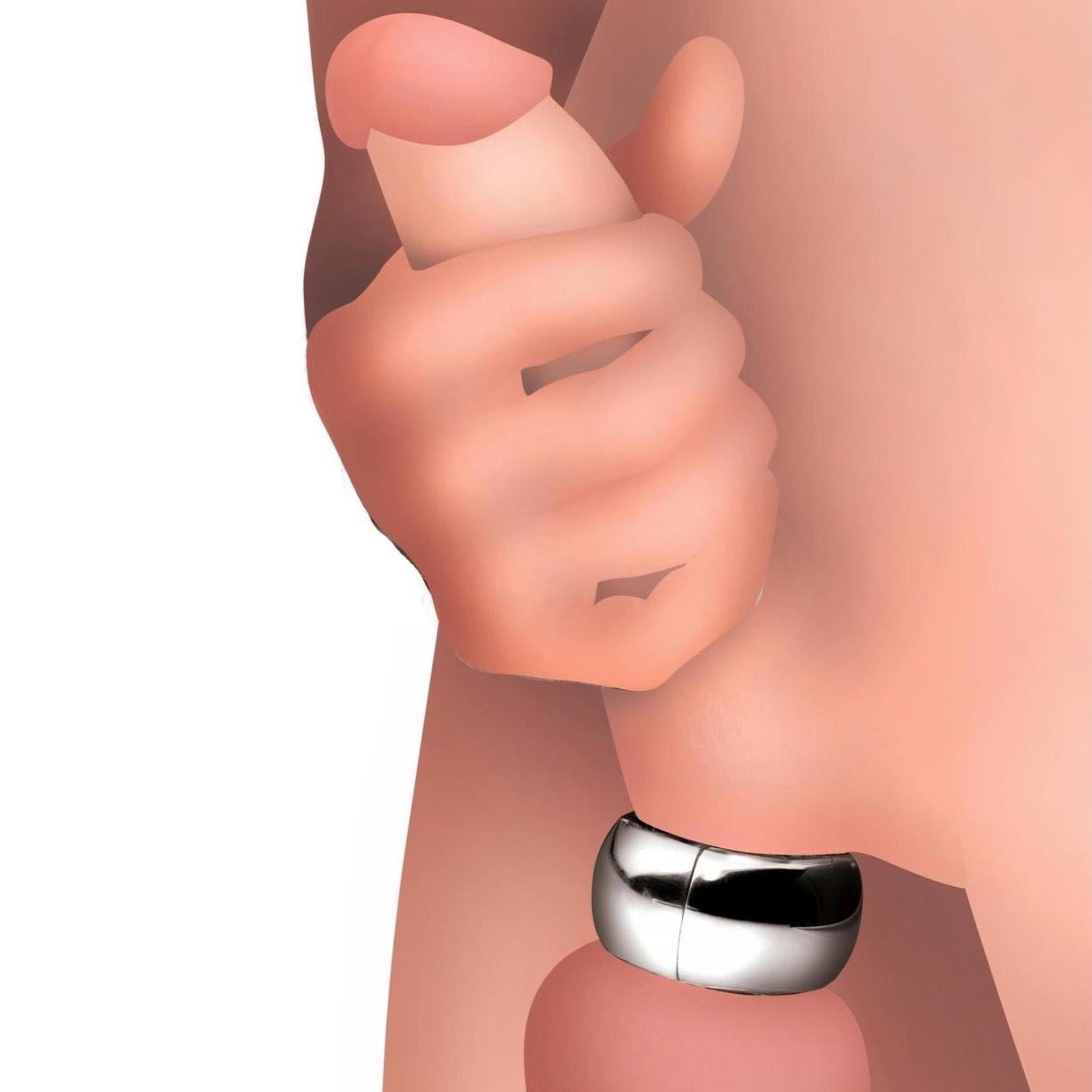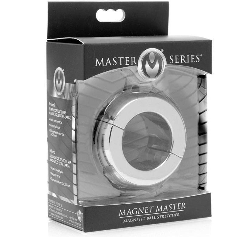 Great for CBT enthusiasts or anyone who enjoys a strong tug on their scrotum, this heavy stainless steel ball-stretcher has two halves that hold together magnetically. The durable design gives you nearly a pound of weight to pull down on your balls. The powerful magnet makes this device easy to put on and take off, just be careful to keep all your skin within the ring! Use it on your own or with a partner to test your limits. Stainless steel is compatible with all types of lubricant and sanitizes thoroughly with mild soap and warm water.