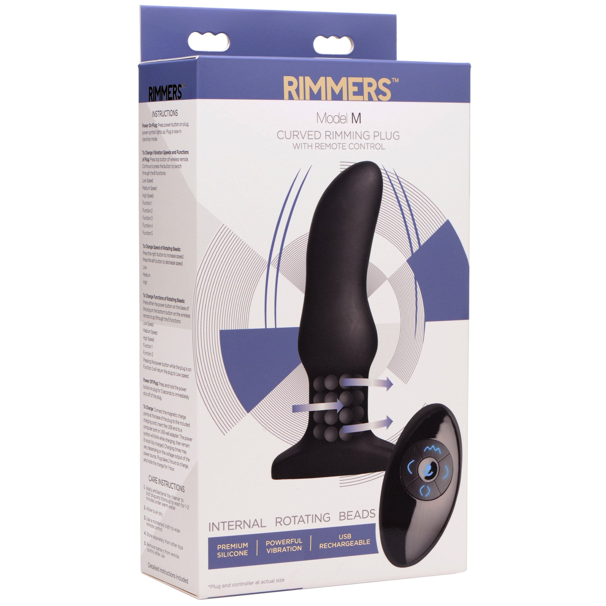 Curved to target the P-spot or, in women, to reach towards the G-spot, this anal massager also features a bulging bulb for your inner pleasure! Better than your average butt plug, this revolutionary sex toy will actually massage the opening to your hole with rotating beads along its stem, providing a sensation similar to a rim job! Play with 3 speeds and 2 functions of swirling satisfaction around your sphincter. You will also be treated to 3 speeds and 5 patterns of vibration as the plug thrums inside you. An optional remote control can make playing on your own easier, but it can also provide wireless fun with a partner. Light up buttons on the remote and the plug make them easy to see in the dark. Made of premium silicone, this exciting tool is non-porous, phthalate-free, and waterproof for a body-safe experience and thorough sanitization with soap and water.