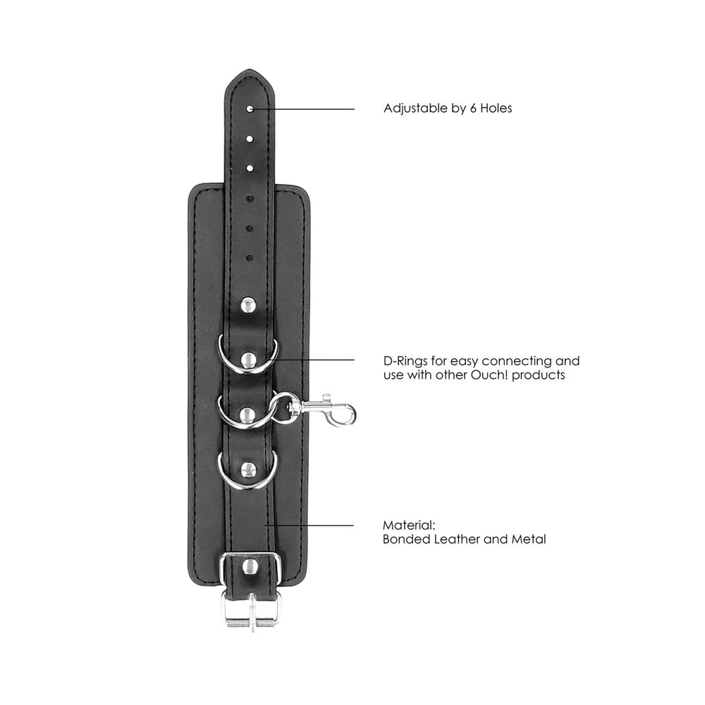 Looking for a cuff that can do it all and made to play hard? Look no further. The cuffs of Ouch! have quality leather straps with elegant stitching down the length of the straps, They're comfortable but incredibly secure. The straps have 6 holes to adjust the length. with metal fastenings and D-ring connectors to connect them. Use this toy on its own, or in combination with other products of Ouch!