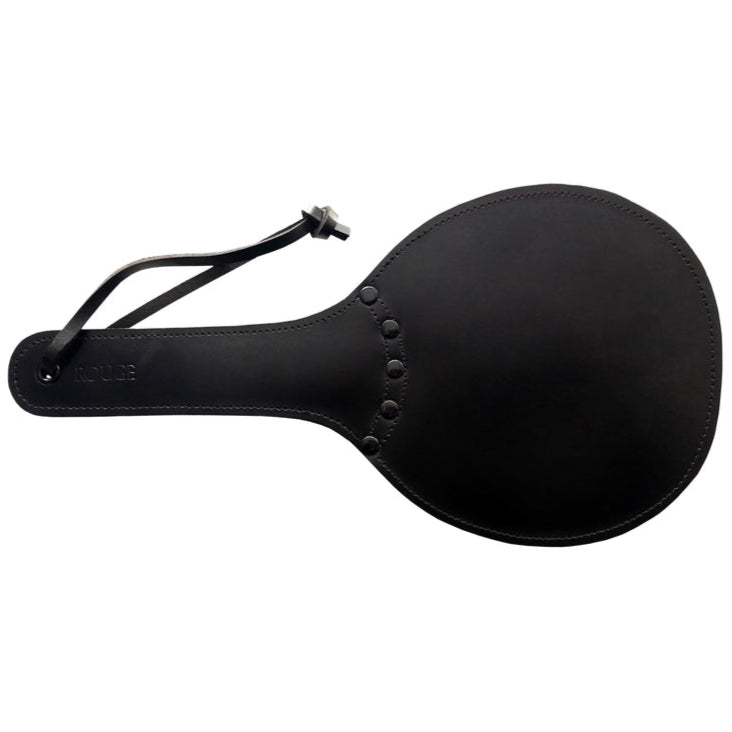This leather ping pong style paddle has two sides, the padded side will deliver a hard whack and the other a satisfying sting. All black with black Accessories.