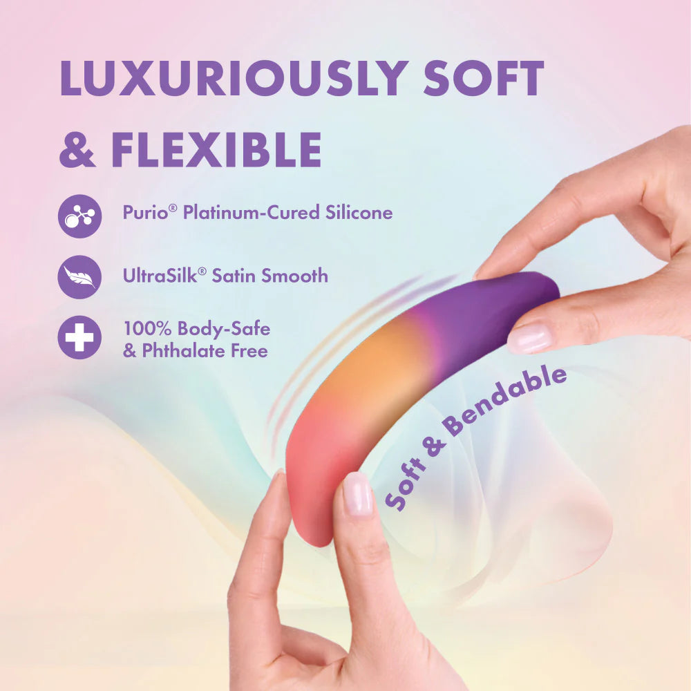 Surrender to gentle yet powerful waves of pleasure with Dolphin Dreams, a petite powerhouse that turns every touch into sensual indulgence. Designed for playful pleasure, this adorable, pocket-sized vibrator reveals 10 deep yet quiet vibration modes, with a precision tip for targeted sensations, guiding you to moments of pure bliss. Whether it’s slow, seductive foreplay, pinpoint clitoral stimulation, or sensual nipple pleasure, Dolphin Kisses delivers focused vibrations exactly where you crave them most. Explore a range of sensations, from gentle pulses to deep, resonant thrills, to discover your ultimate pleasure points. Crafted from Blush’s Purio® platinum-cured liquid silicone, the vibrator’s lusciously soft and bendable design ensures sweet and customizable pleasure. Its IPX7 waterproof rating ensures adventurous play, and USB charging adds convenience. Feel the playful caress of Dolphin Dreams and let every touch carry you away on a 'sea of intimate sensation'.